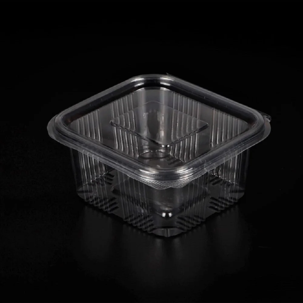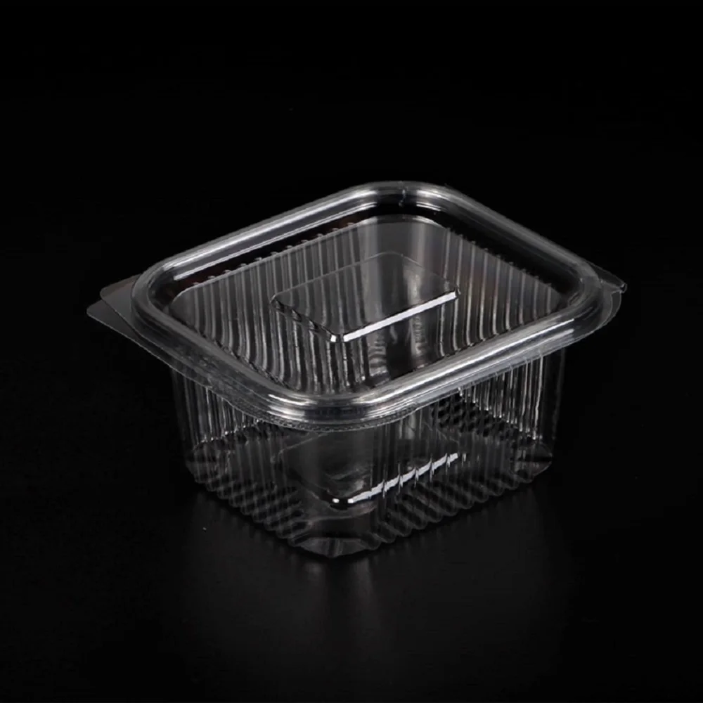 100% перерабатываемый: Он изготовлен из 100% переработанного ПЭТ. Это перерабатываемая пластиковая откидная крышка контейнера с прозрачной крышкой.