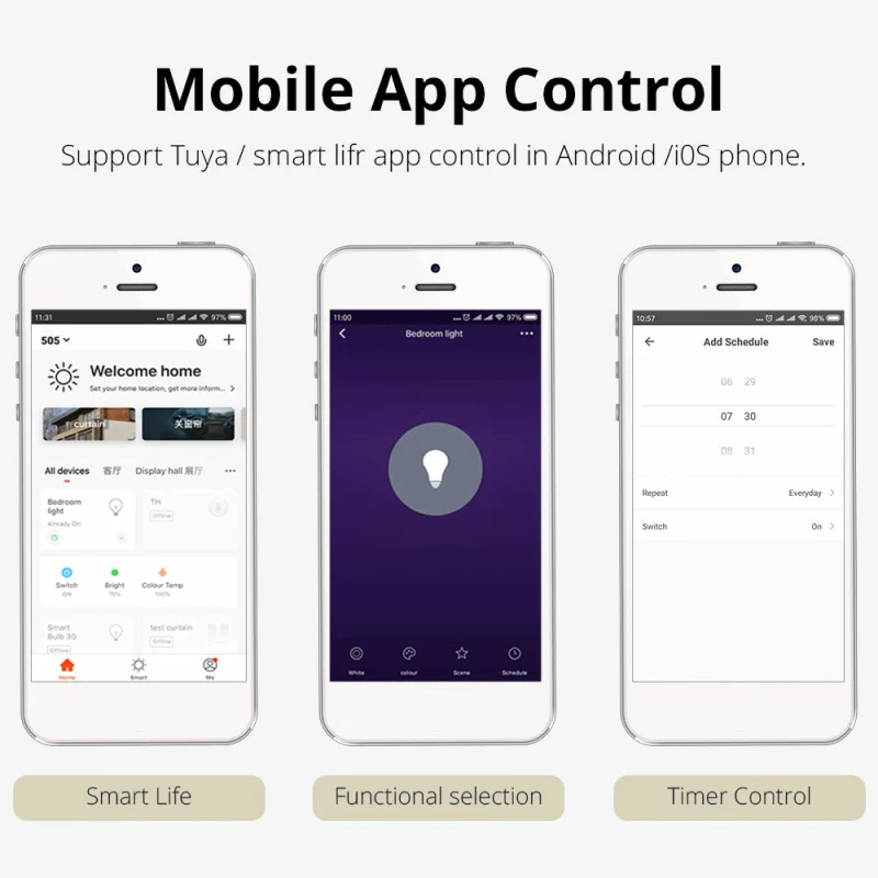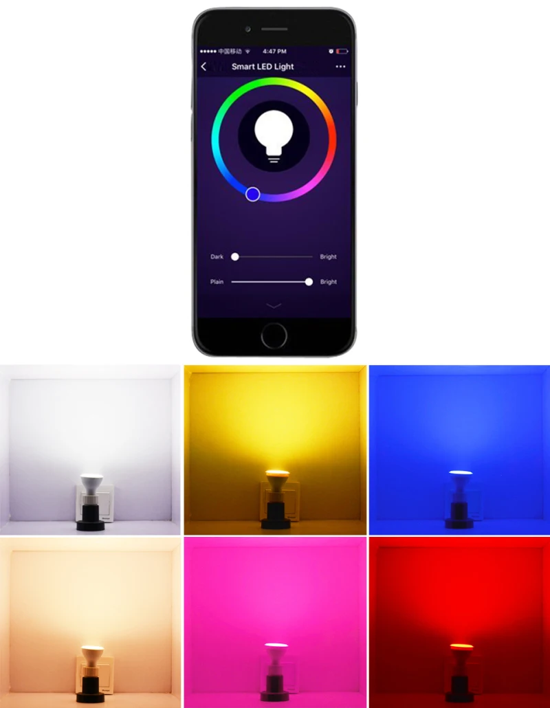 Устройство напрямую подключено к Wi-Fi, и мобильный телефон app удаленно контролирует светильник дома в любое время.