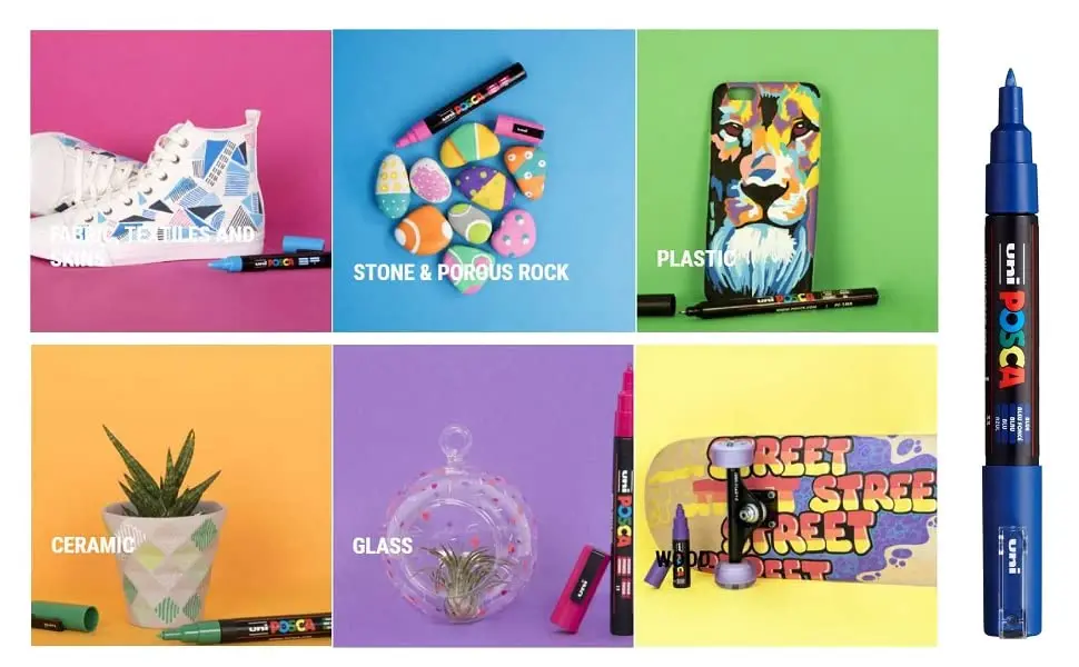 Найдите новые способы выражения своего творчества! Покрасочные маркеры POSCA работают на более чем 50 поверхностях с самыми разными размерами и формами наконечников. Выразите себя с яркими цветами, которые легко смешиваются и быстро становятся яркими.