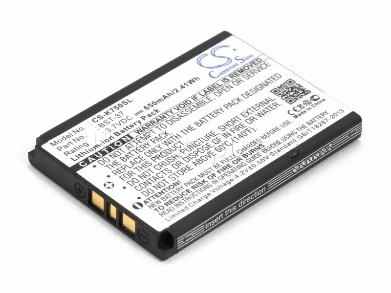 Аккумуляторная батарея BST-37 для сотового телефона Sony Ericsson D, J, K, S, V, W, Z серии.Li-ion, 650mAh, 3.7V, цвет черный. Изготовитель Cameron Sino, Китай.