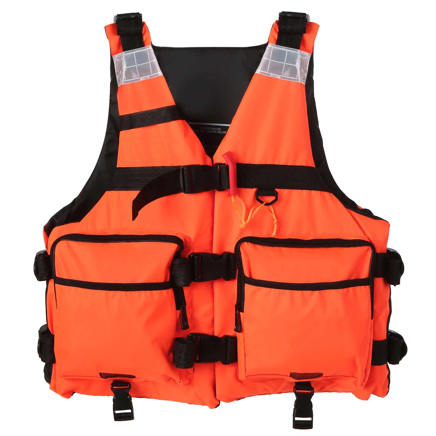 Эта Спасательная куртка изготовлена из устойчивой к царапинам полиэфирной ткани и легкой пены для длительного использования. Он имеет два кармана на молнии и два открытых кармана, чтобы обеспечить достаточно места для хранения ваших вещей. Дизайн с тремя пряжками, регулируемые ремни и открытые стороны делают куртку безопасной и удобной для вас. Светоотражающие панели с высокой видимостью и Прикрепленный свисток могут помочь повысить безопасность при занятиях водными видами спорта, такими как Каякинг, рыбалка, плавание, водные лыжи и многое другое.