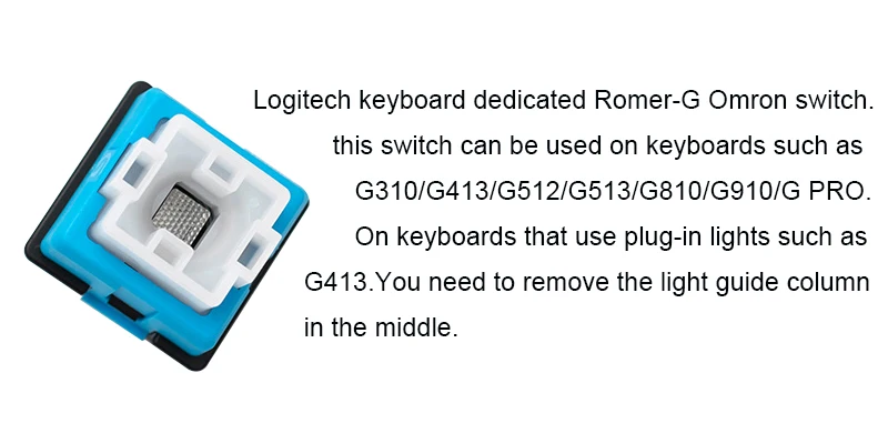 Количество: 2 шт. Logitech клавиатура выделенный Romer-G Omron переключатель. Этот переключатель может быть использован на клавиатурах, таких как G310/G413/G512/G513/G810/G910/G PRO. На клавиатурах, в которых используется плагин-светильник s, такой как g413.необходимо снять светильник с направляющей колонны посередине.