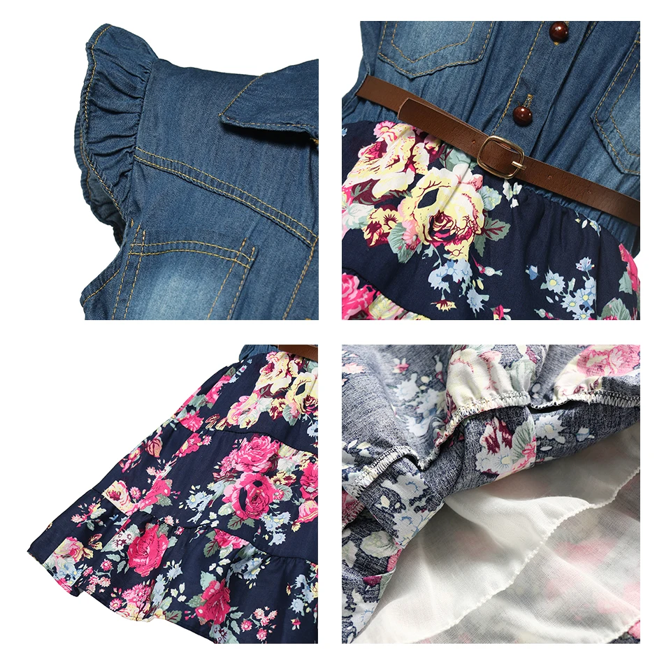 Название: джинсовое платье с цветочным рисунком для девочек; Летнее праздничное платье с поясом; Детская повседневная одежда с короткими рукавами; Модная одежда для маленьких девочек; Упаковка: opp сумки; Материал: хлопок, полиэстер; Ярлык: 100-110-120-130-140-150-160 Размер США: 2T,3T,4T,5T,6T,7T,8T,9T,10T,11T,12T