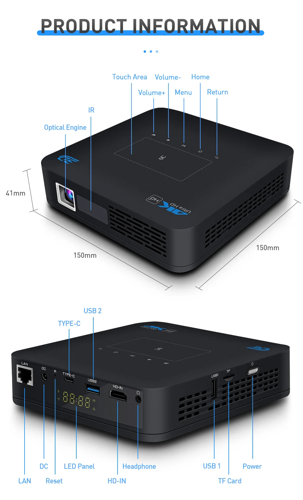 5G Wifi BT 4K 3D Zoom Airplay Miracast