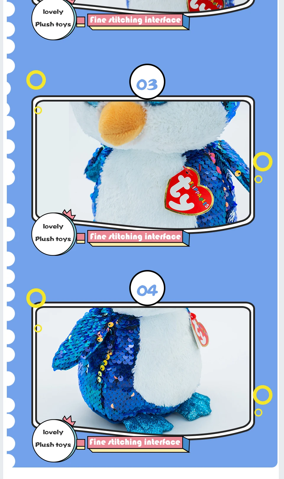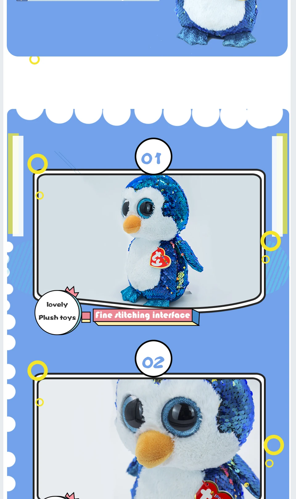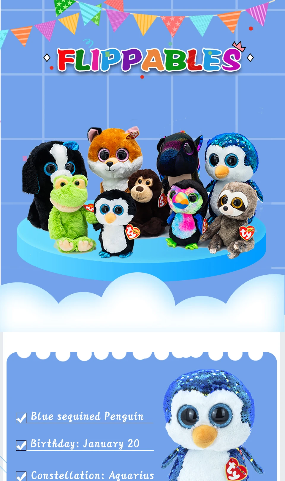 Новинка Ty Beanie Big Eyes Горох с блестками плюшевое животное синий пингвин Коллекция игрушек детские куклы на день рождения Рождественский подарок 15 см
