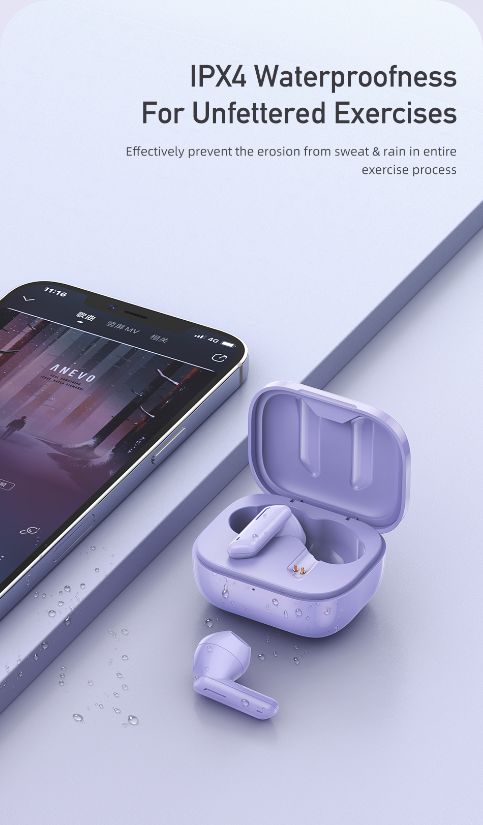 IPX4 waaterproof для неограниченных упражнений: