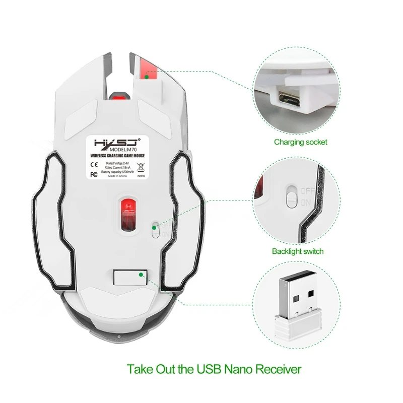 Этот продукт представляет собой беспроводную мышь, которая используется для многократной зарядки, без вождения, может быть совместима с несколькими системами, прост в использовании.