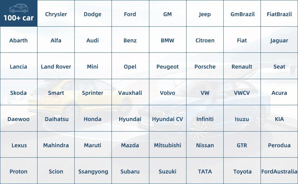 EUCLEIA Tabscan X7 поддерживает более 100 автомобилей