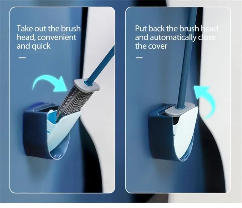 1. Набор кистей для унитаза: силиконовые щетки для унитаза, изготовленные из высококачественного АБС-пластика + силиконовой головки щетки, антиадгезивное покрытие, отсутствие грязи может прикрепить к щетине и таким образом обеспечивает свободную зону.