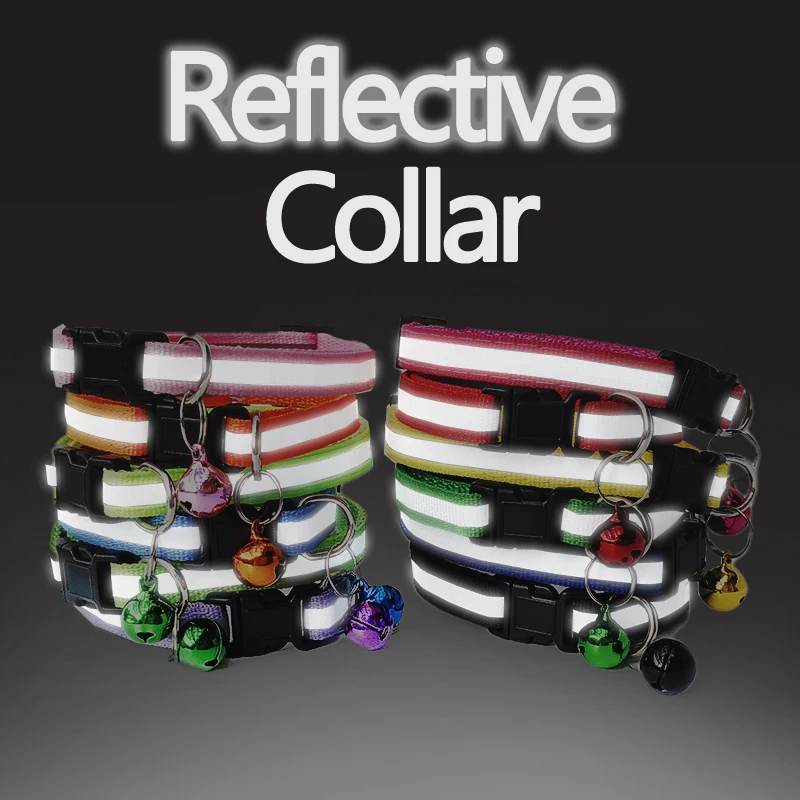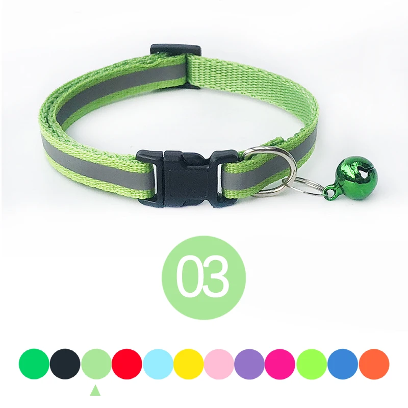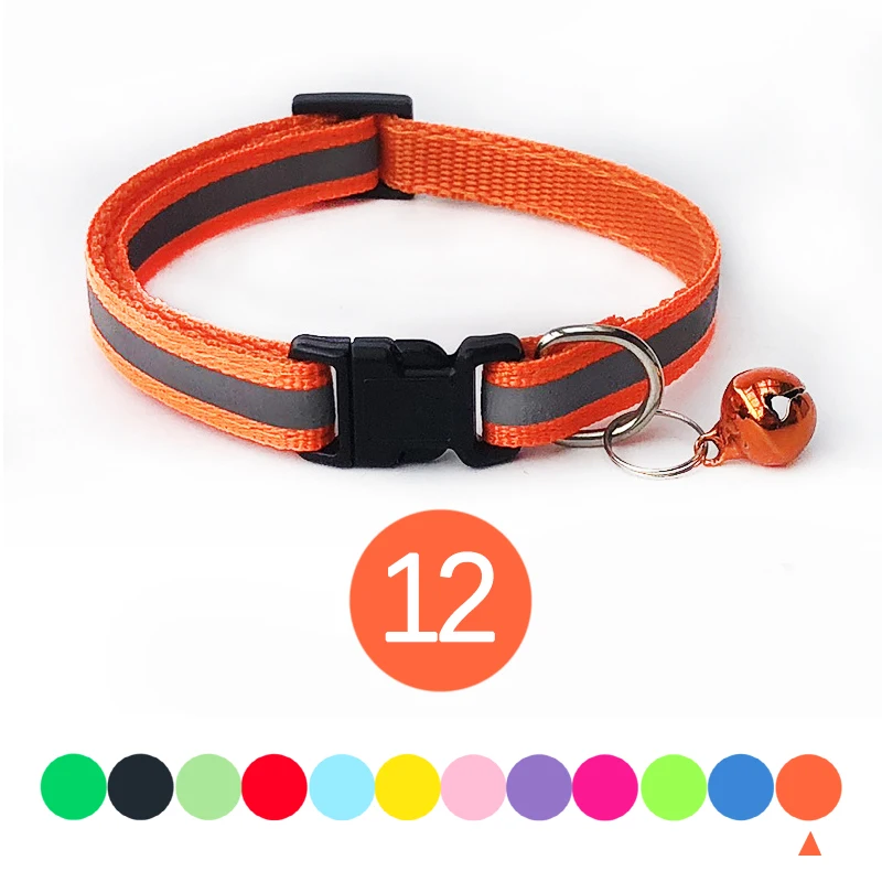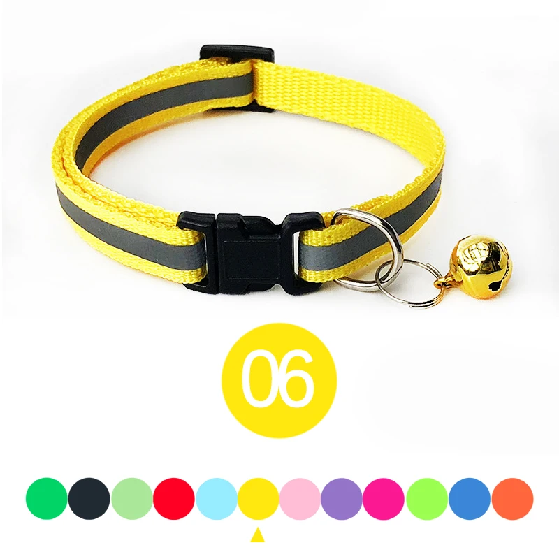 Светоотражающий ошейник с колокольчиком, регулируемый размер, цветной нейлоновый ремень для шеи щенка, подходит для кошек и маленьких товары для животных, собак