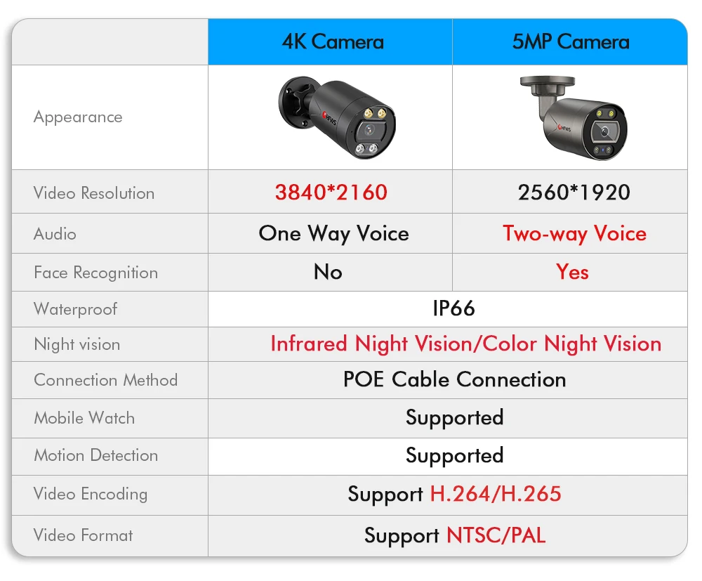 1. Поддержка подключения до 8 камер к сетевому видеорегистраторУ 8 каналов. 2. Поддержка удаленного просмотра, перекрестных устройств. 3. Питание через систему Ethernet, нет необходимости в дополнительном кабеле питания, esay setup. 4. H.265 кодирование, может сэкономить до 50% storeage, и воспроизведение более плавным, передача быстрее. 5. Поддержка записи и водонепроницаемость IP66.