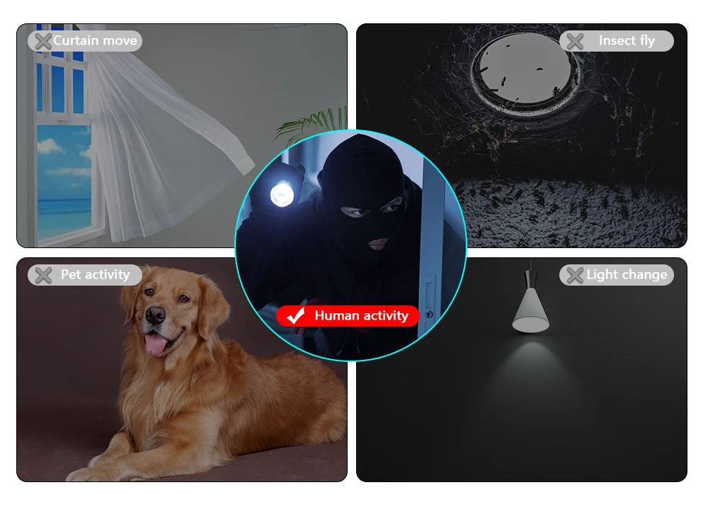 Интеллектуальная идентификационная сигнализация Только когда кто-то пройдет зону сигнализации, камера отправит сигнал тревоги, повысит точность сигнала тревоги.