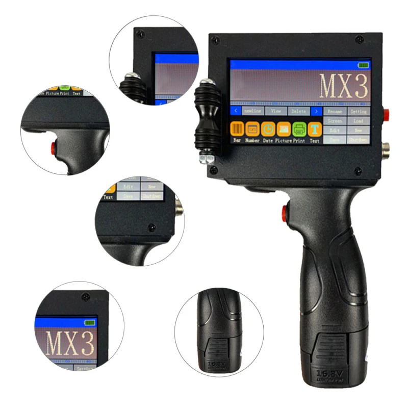 3. Чувствительный ЖК-дисплей сенсорный Экран: ручной струйный принтер имеет 4,3 дюймов ЖК-дисплей сенсорный Экран, простых в использовании и быстрый отклик интерфейс, непосредственно редактировать содержимое, который должен быть напечатан, И он также может непосредственно вставить флеш-накопитель usb для импорта содержимого печати.