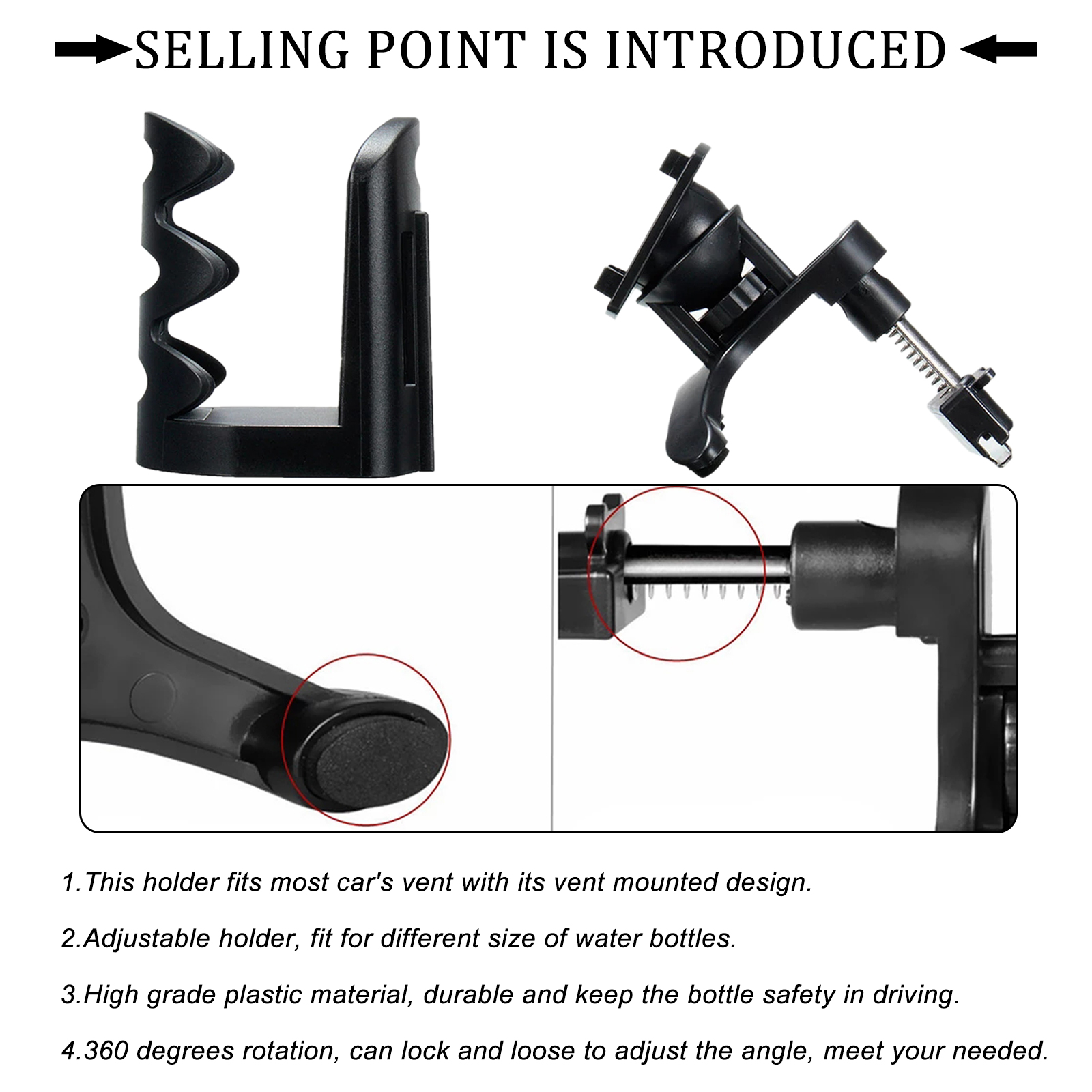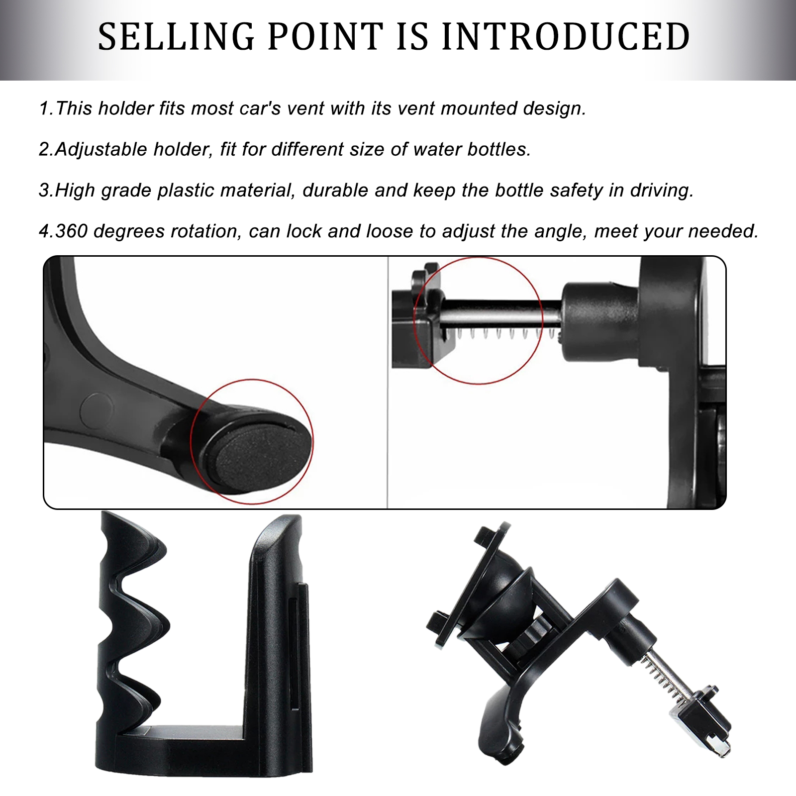 2. Регулируемый держатель, подходит для различных размеров бутылок для воды.