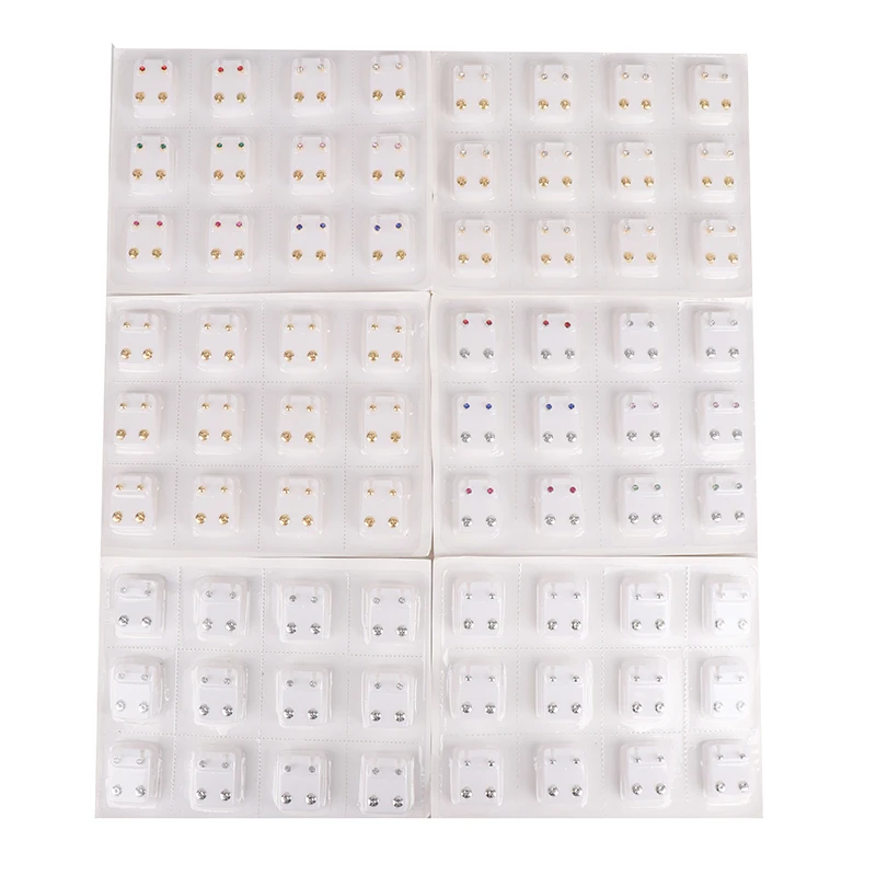 Стальные серьги-гвоздики со стальным стопором, 12 пар
