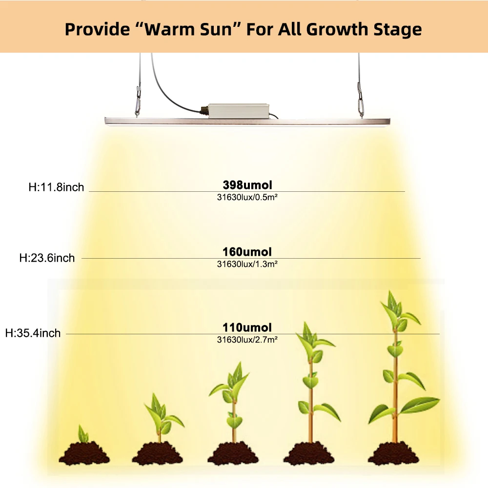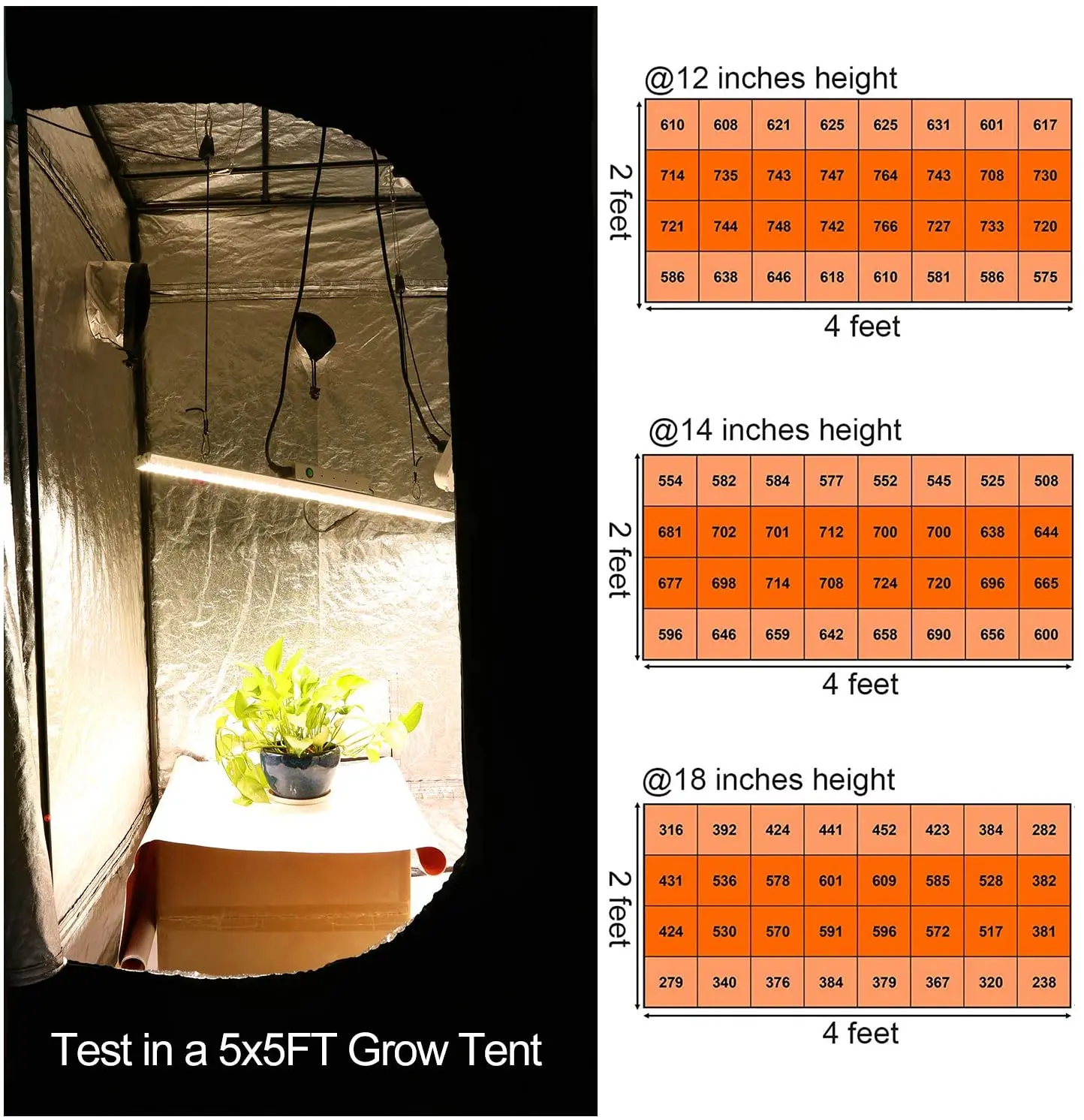 Свет роста растений состоит из 126 светодиодных чипов Samsung LM301B, 10 светодиодов Osram 660nm красный свет, который похож на солнечный свет и может эффективно способствовать росту листьев и корневищ и синтезу белков. Подходит для комнатных растений на различных этапах роста.