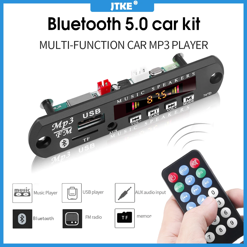 С модулем аудио-приемника Bluetooth, когда мобильный телефон и модуль Bluetooth совпадают с конфигурацией, MP3 или неразрушающие файлы APE через Bluetooth отправляются на продукт модуля приемника Bluetooth для воспроизведения, которые в значительной степени помогли функции продукта и развлечения. Этот продукт также выглядит как обычная MP3 декодер карта, диск или tf-карта, и радиопрограмма. (Этот продукт без функции вызова Bluetooth, без усилителя мощности, только внешний усилитель может использовать его)