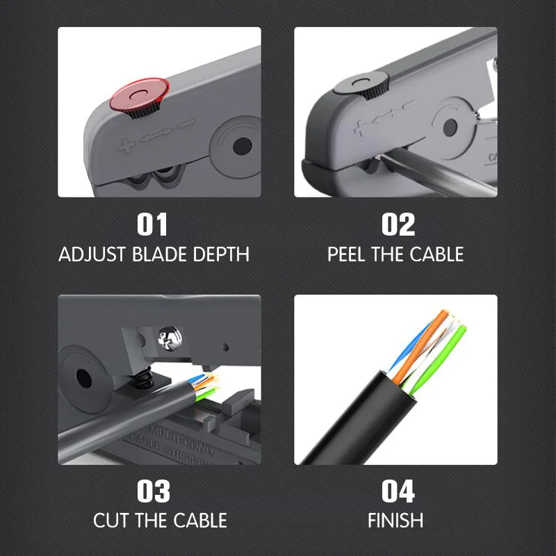 UTP / STP на линии клея 〉 легко регулировать глубину лезвия для большинства круглых кабелей.