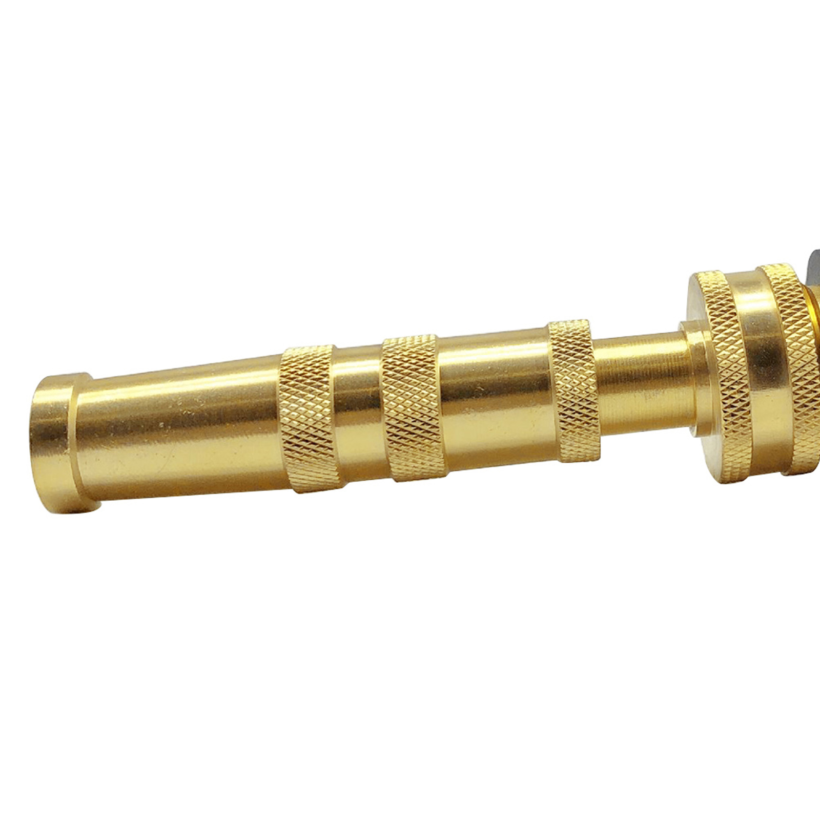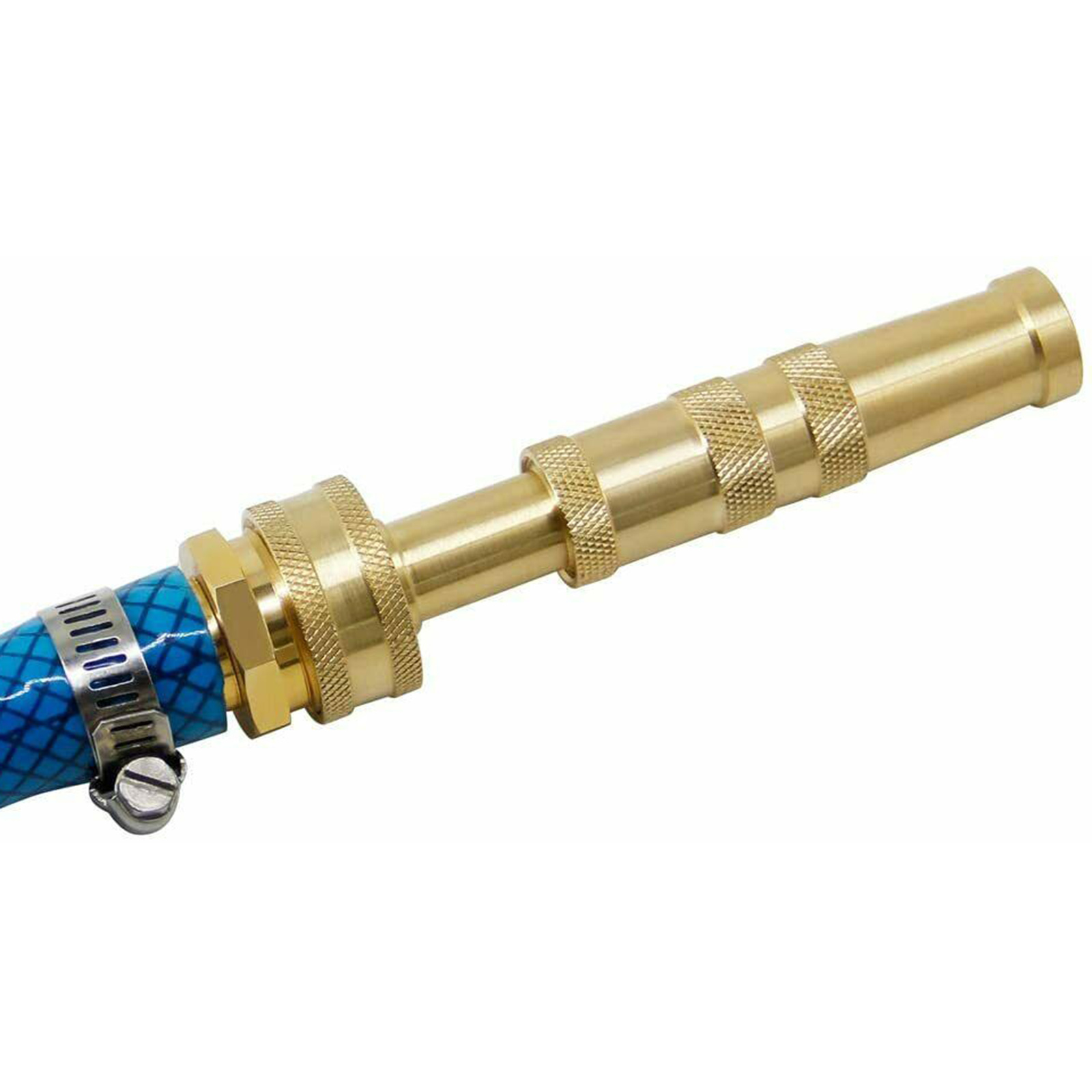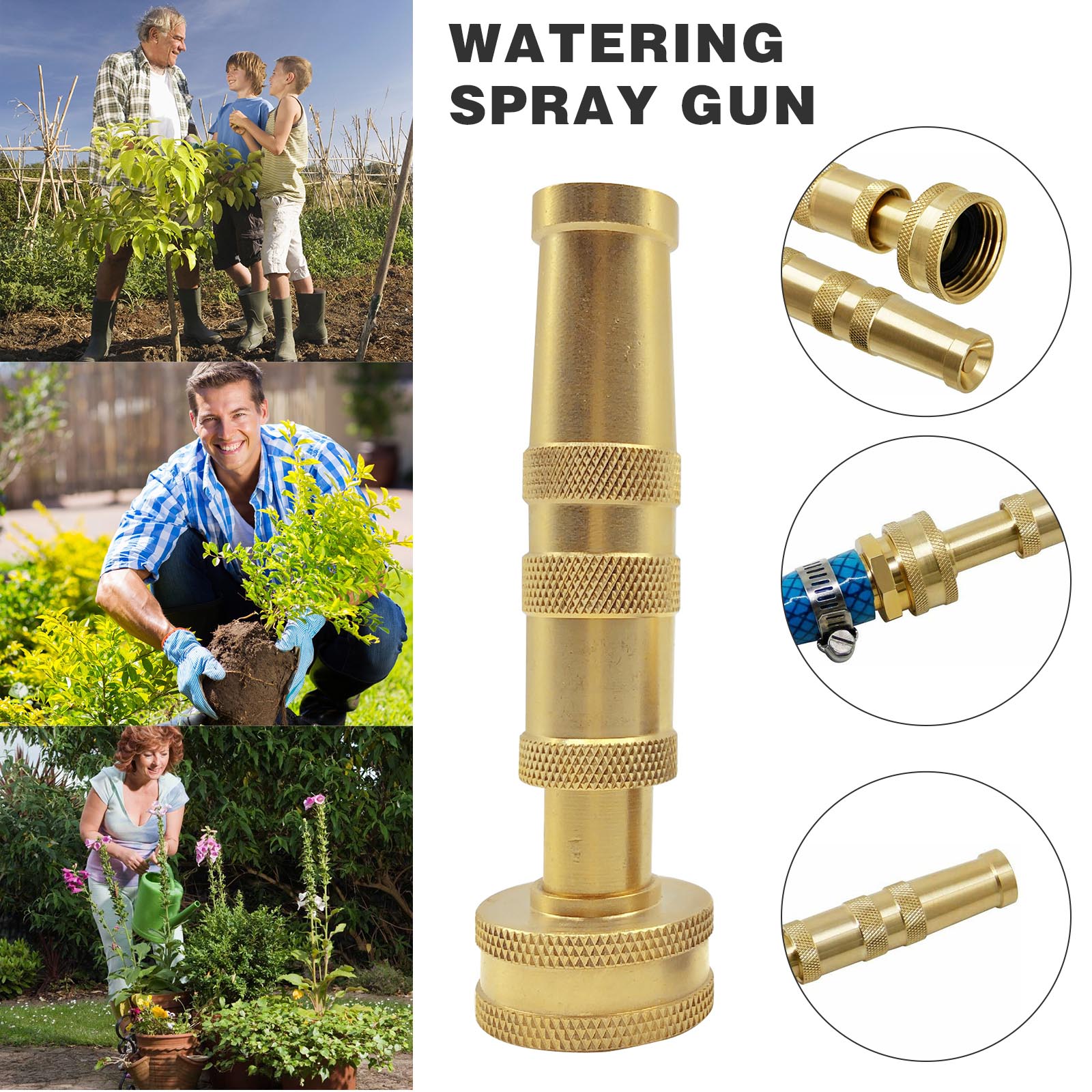 Регулируемая: латунная насадка на шланг с 4 отверстиями на наконечнике имеет витую бочку, которая может регулировать воду от тонкого тумана для полива растений до мощного сопла для удаления толстой грязи или Мойки автомобиля.