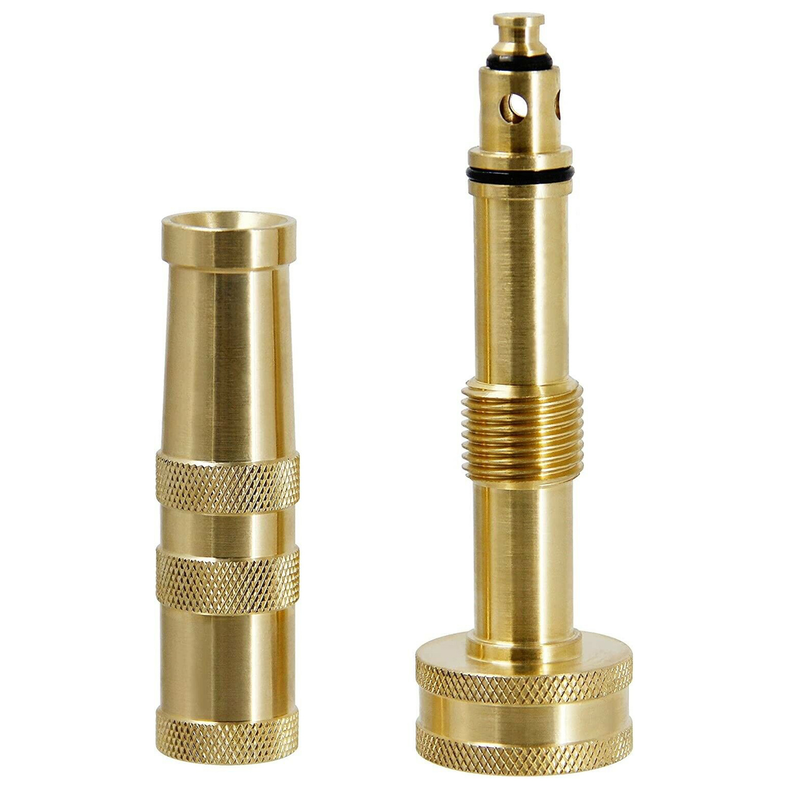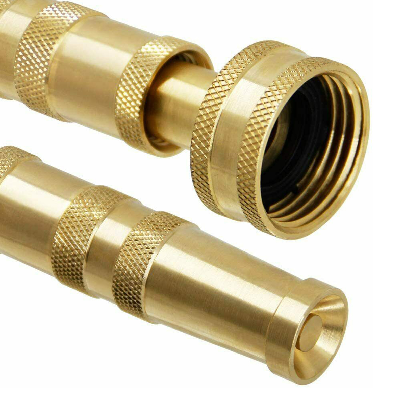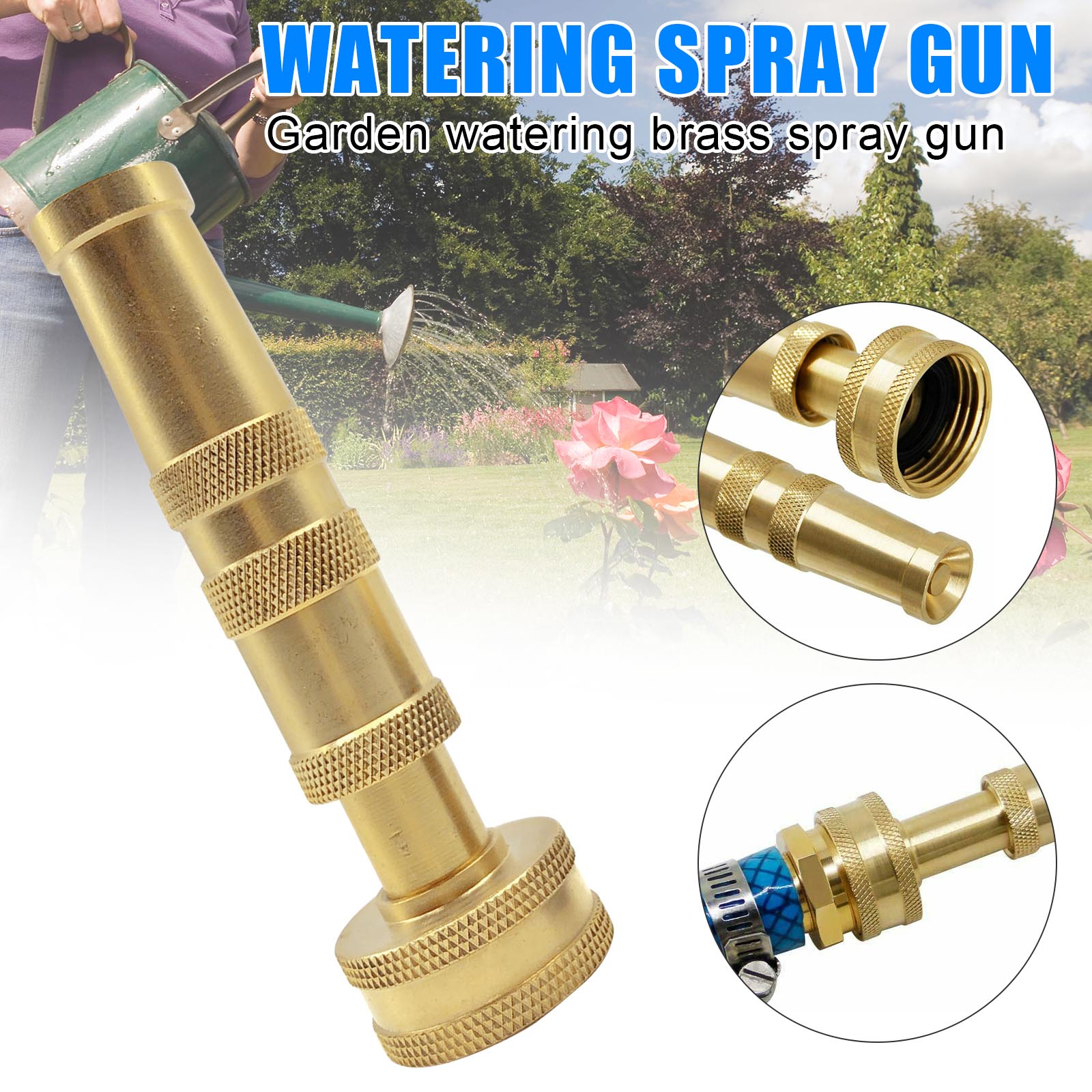 Регулируемая: латунная насадка на шланг с 4 отверстиями на наконечнике имеет витую бочку, которая может регулировать воду от тонкого тумана для полива растений до мощного сопла для удаления толстой грязи или Мойки автомобиля.