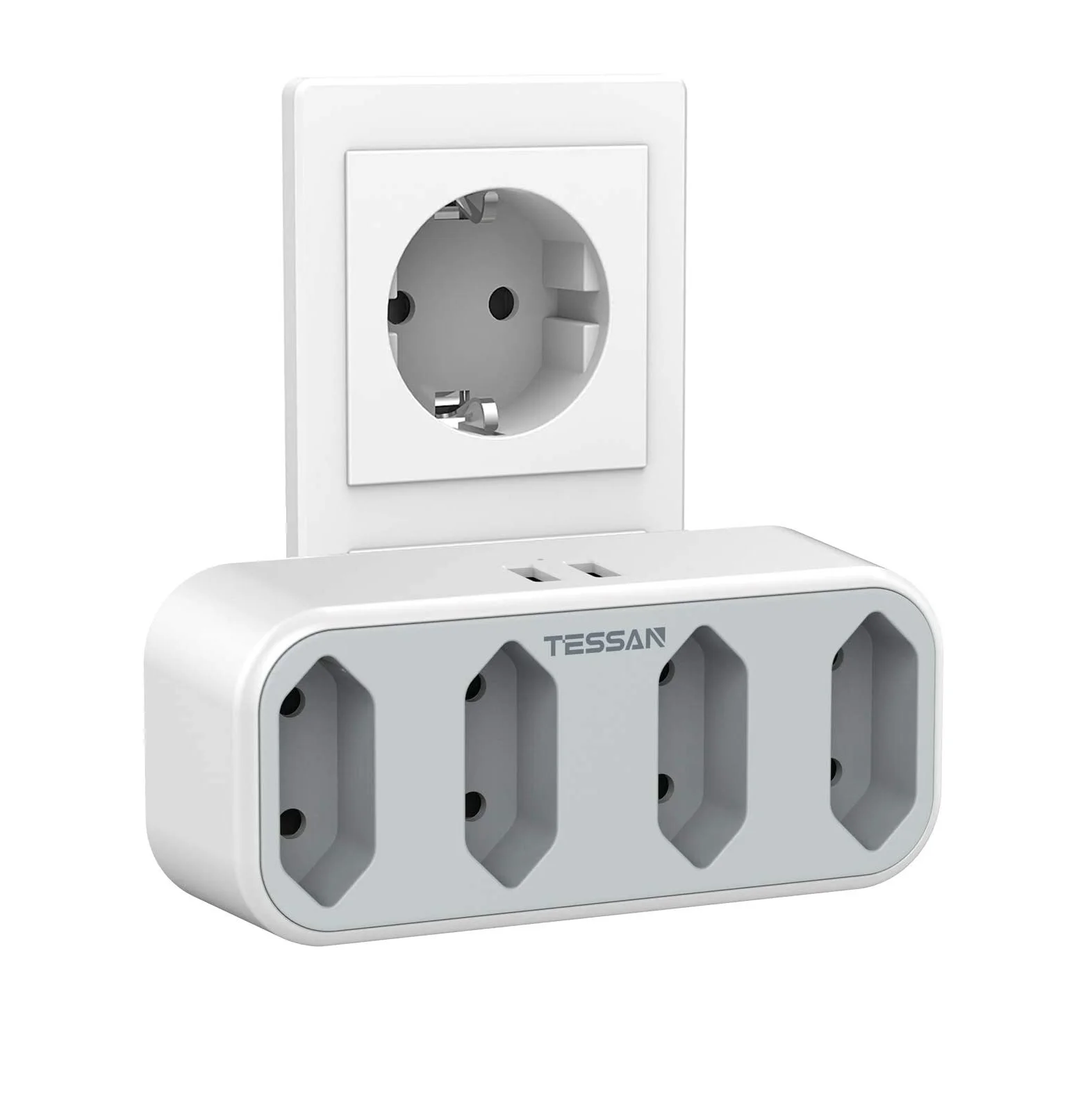 TESSAN штепсельные розетки европейского стандарта, блок питания с 2 usb-портами, 4 розетки европейского стандарта, адаптер для путешествий 110 ~ 250 В 2500 Вт, расширитель для нескольких розеток