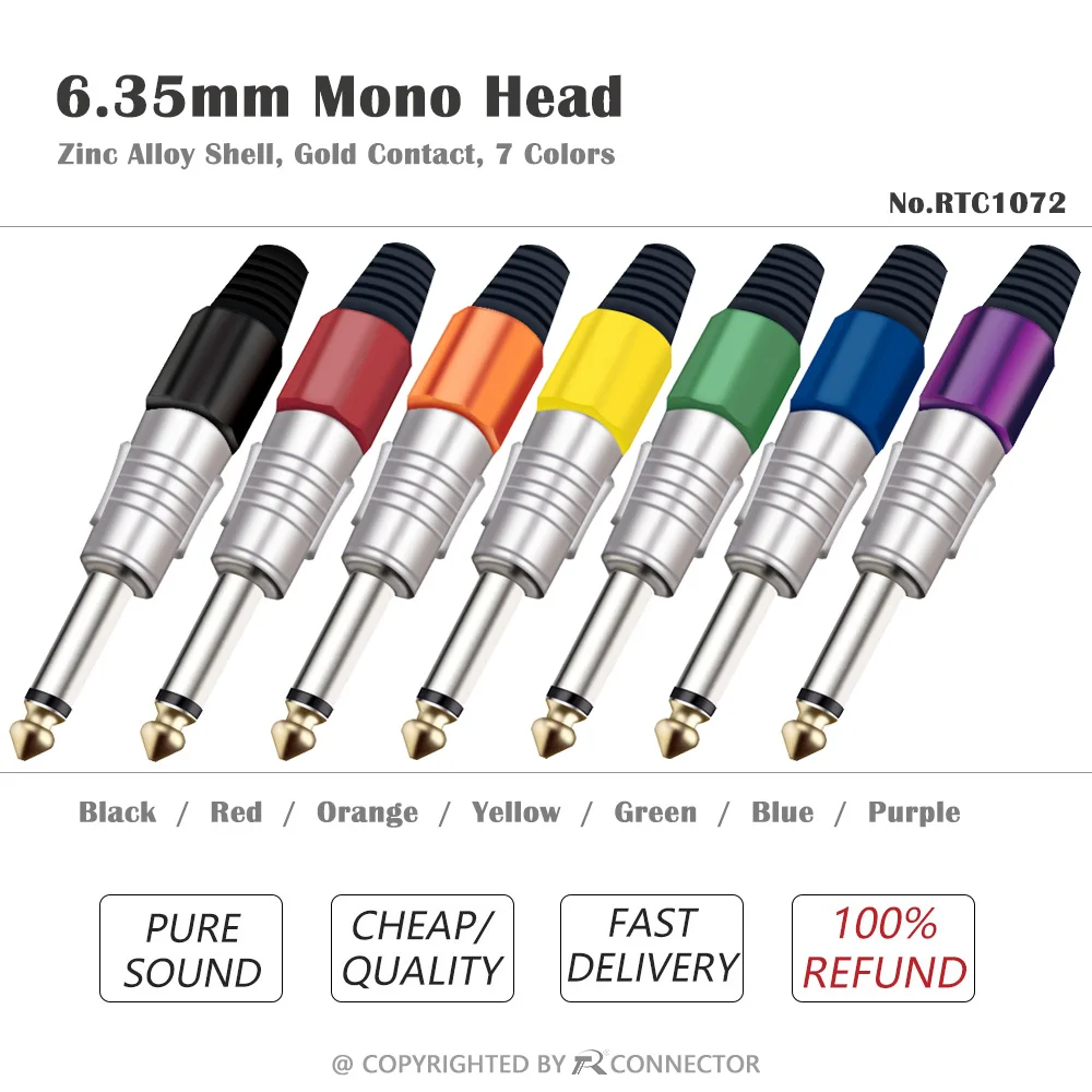 Jack 6,35 провод разъем аудио динамик 6,35 мм моно/стерео TS/TRS разъем для микрофона усилителя никелированный 7 цветов варианты