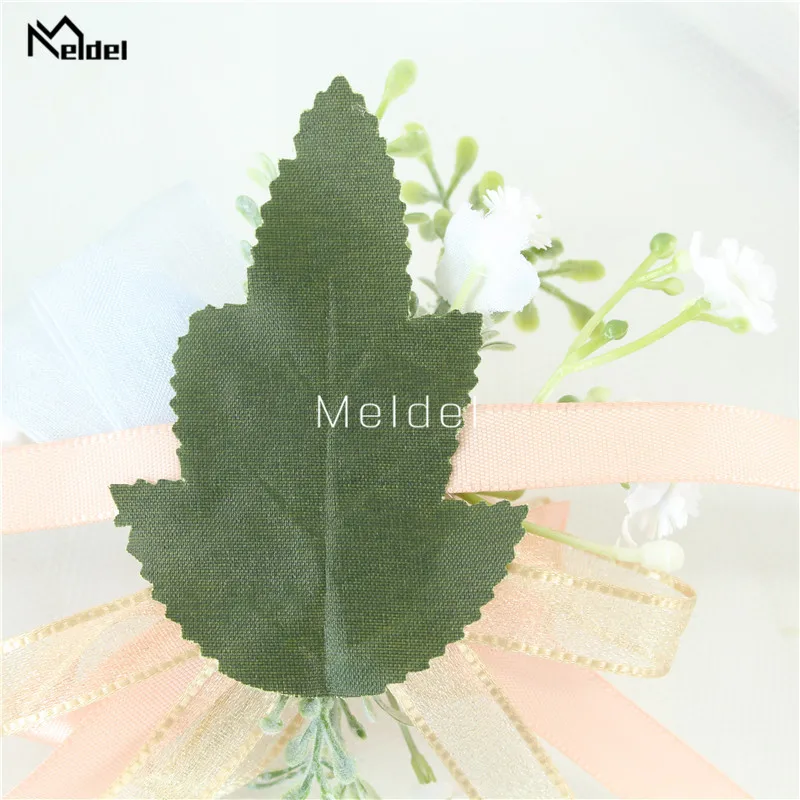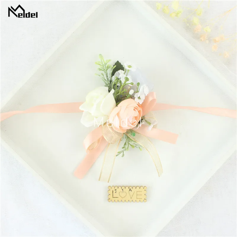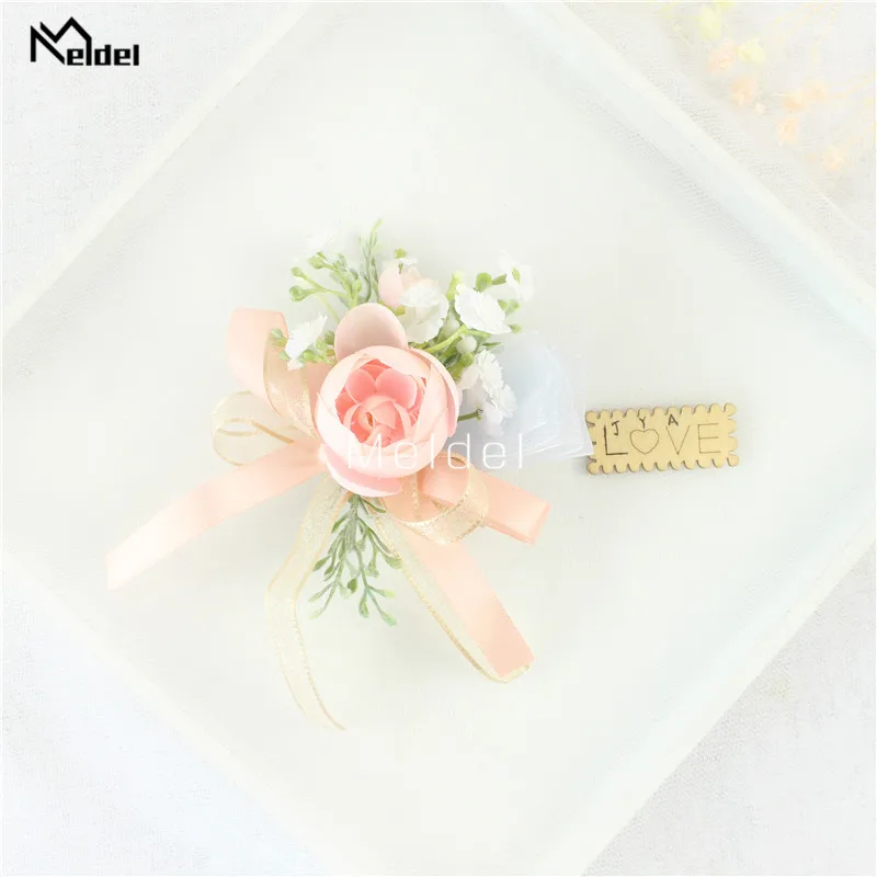 Розовый цветочный корсажный браслет Meldel на запястье, Розовая Лента Жених подружки невесты, Ручные цветы, Свадебные бутоньерки, аксессуары для свадьбы, выпускного вечера