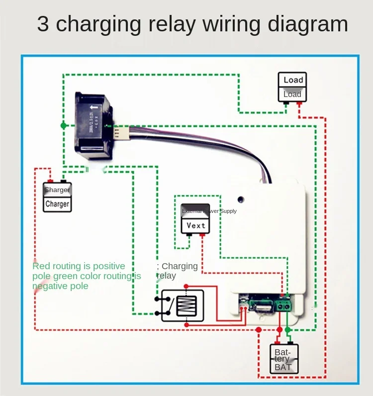 Объяснение: рабочий источник питания реле обеспечивается внешним источником питания,Если реле подключено, должен быть предоставлен внешний источник питания с таким же рабочим напряжением, как и релеПодключите порт управления реле к интерфейсу контроллера зарядки, если вы хотите контролировать положительный полюс зарядки, пропустите положительный провод через реле, если вы Хотите управлять отрицательным полюсом зарядки, Подключите отрицательный провод к реле, когда реле включено «В», светильник включается, выключается при отключении в качестве Напоминание.