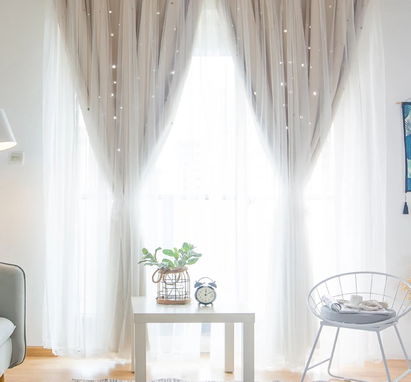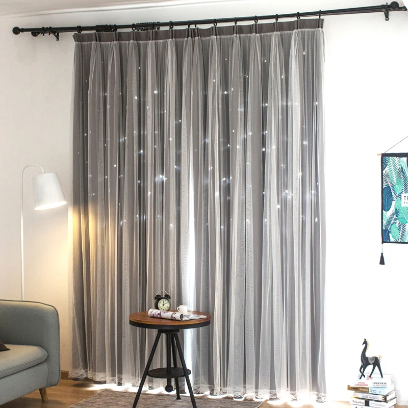 Ahoyikaa двухслойная полая звезда кружевные занавески для окон для гостиной плотные шторы на окнах спальни занавеска украшение для дома