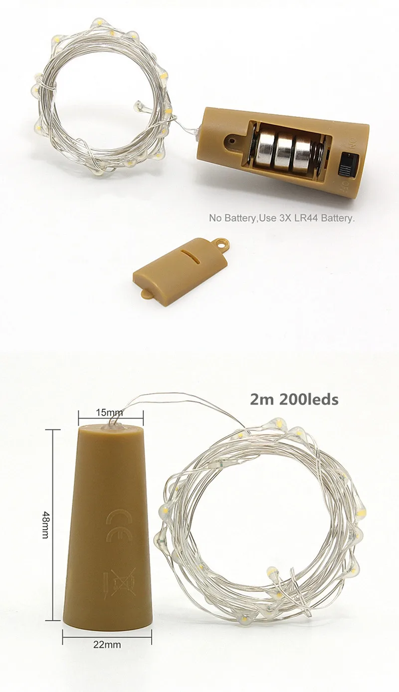 1/6/10/20 шт. винная бутылка Fairy String светильник s 2 м 20LEDs Батарея Корк Медный провод шнура светильник для рождественской вечеринки Свадебный декор