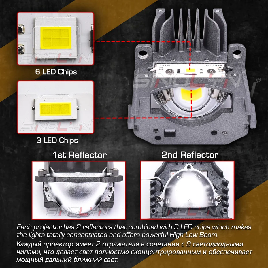 Продукт лет исследований и разработок, Премиум Sinolyn LED retrofit kit имеет все: двухсветодиодный функционал (как светодиод ближнего, так и дальнего света), превосходный светильник на выходе, прочная и простая установка.