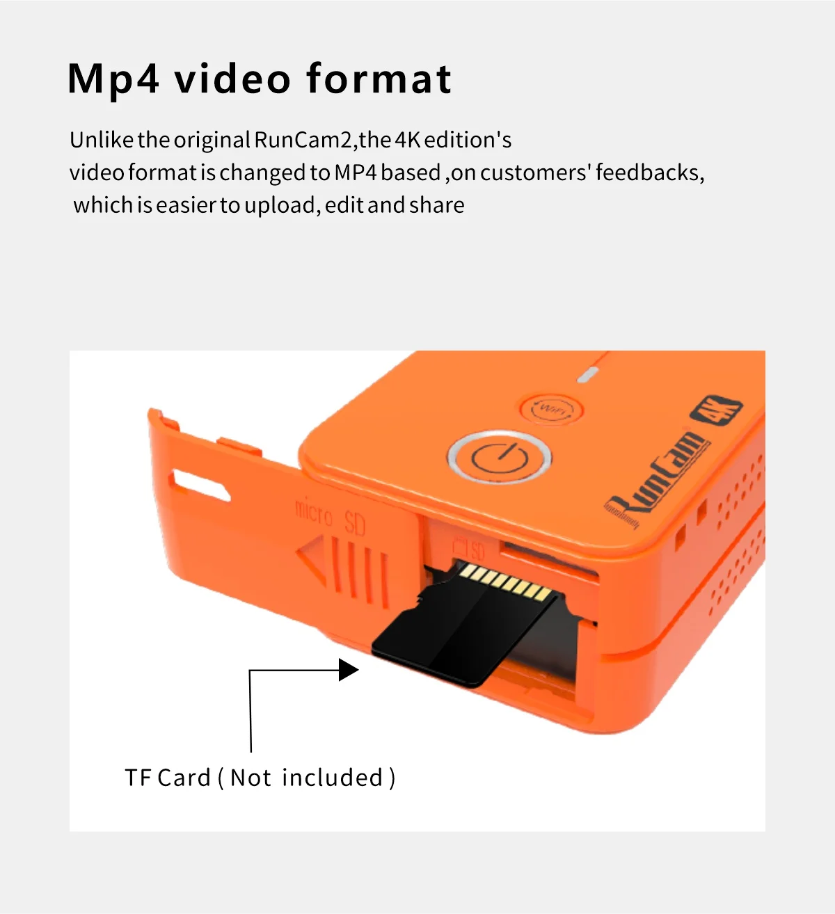 В отличие от оригинального RunCam2, формат видео 4K изменен на MP4