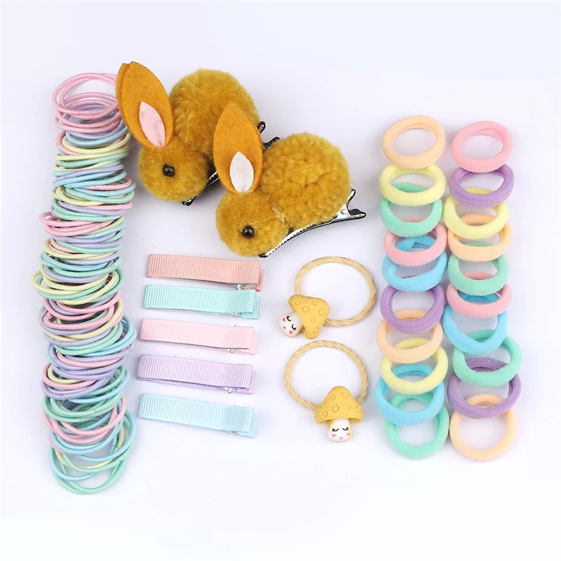 Разноцветные яркие аксессуары для волос, набор для малышей, милый кролик, ободок для волос, эластичная повязка на голову, милые заколки для девочек, головной убор ручной работы