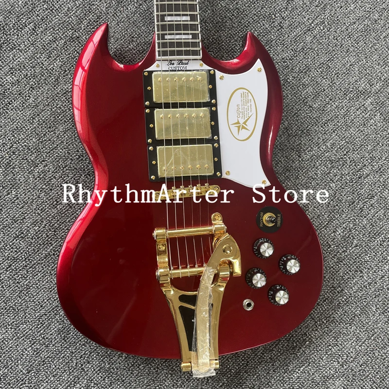 Индивидуальные SG гитары, темно-красный корпус из красного дерева, палисандр гриф, золото цвет оборудования, trill системы, три пикап, бесплатная доставка
