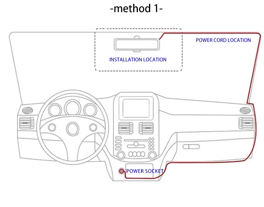 1. Выберите правильное положение: Завяжите регистратор и зеркало заднего вида вместе с ремешком (тип присоски можно зафиксировать непосредственно на лобовом стекле), зафиксируйте устройство и подключите отверстие питания.