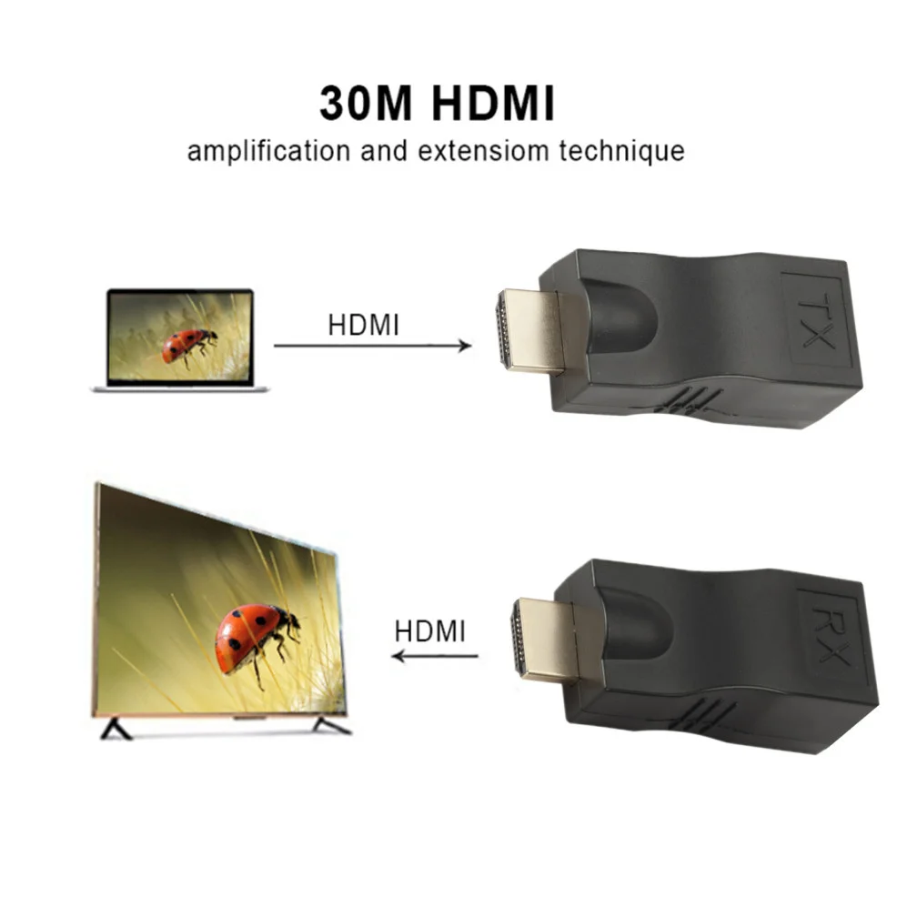 LccKaa 4K HDMI-compatible Extender RJ45 Ports LAN Network HD Extension 30m Over CAT5e/6 UTP LAN Ethernet Cable for HDTV Monitor