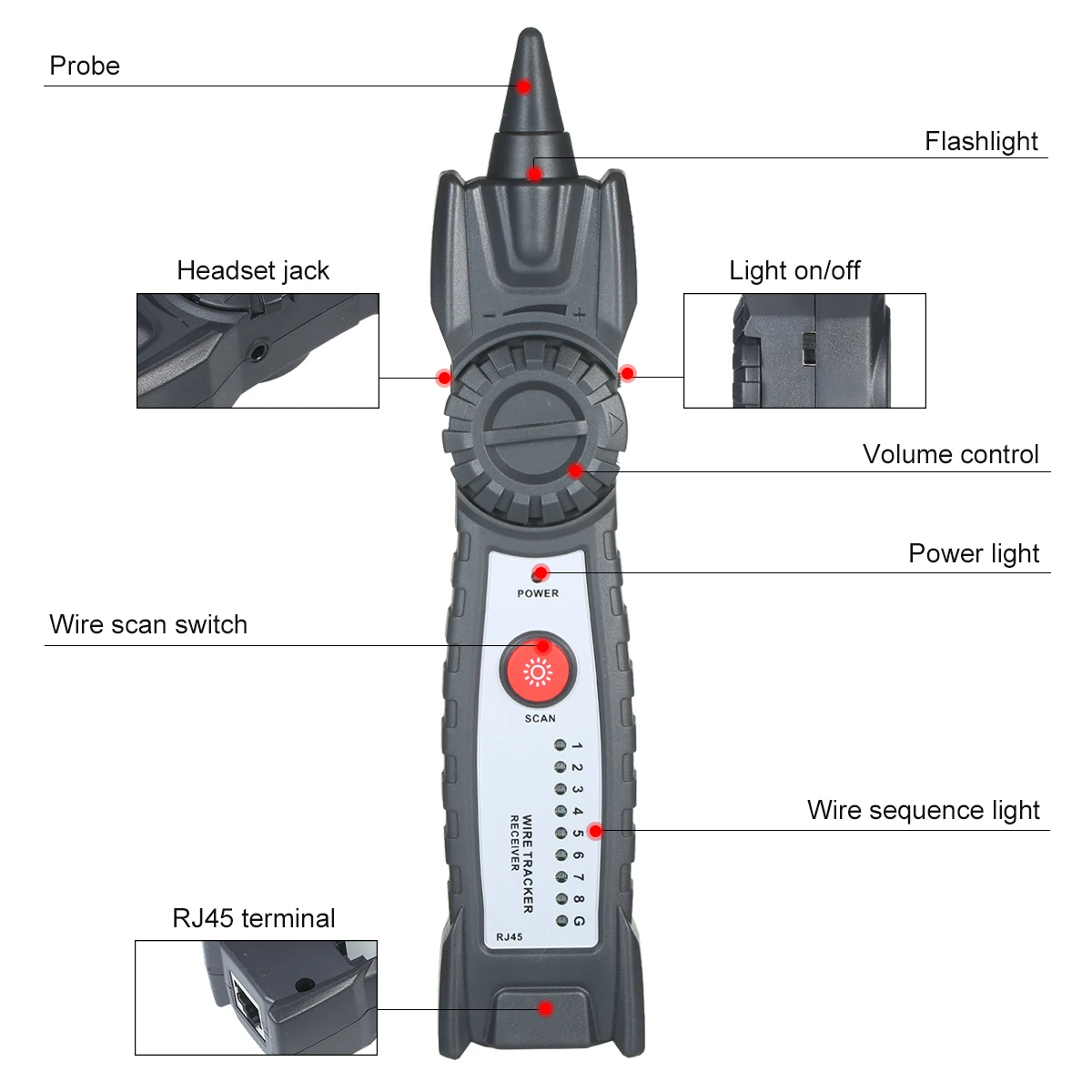 Широкое применение:Многофункциональный проводной трекер подходит для ежедневного обслуживания сетевой связи, интегрированной кабельной сетевой инженерии, ремонта линии мониторинга и т. д.