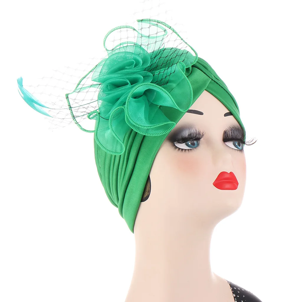 Женская шапка-тюрбан с перьями и цветами, мусульманский шарф-тюрбан, женская шапка-головной убор, шапка-тюрбант в Африканском и индийском стиле