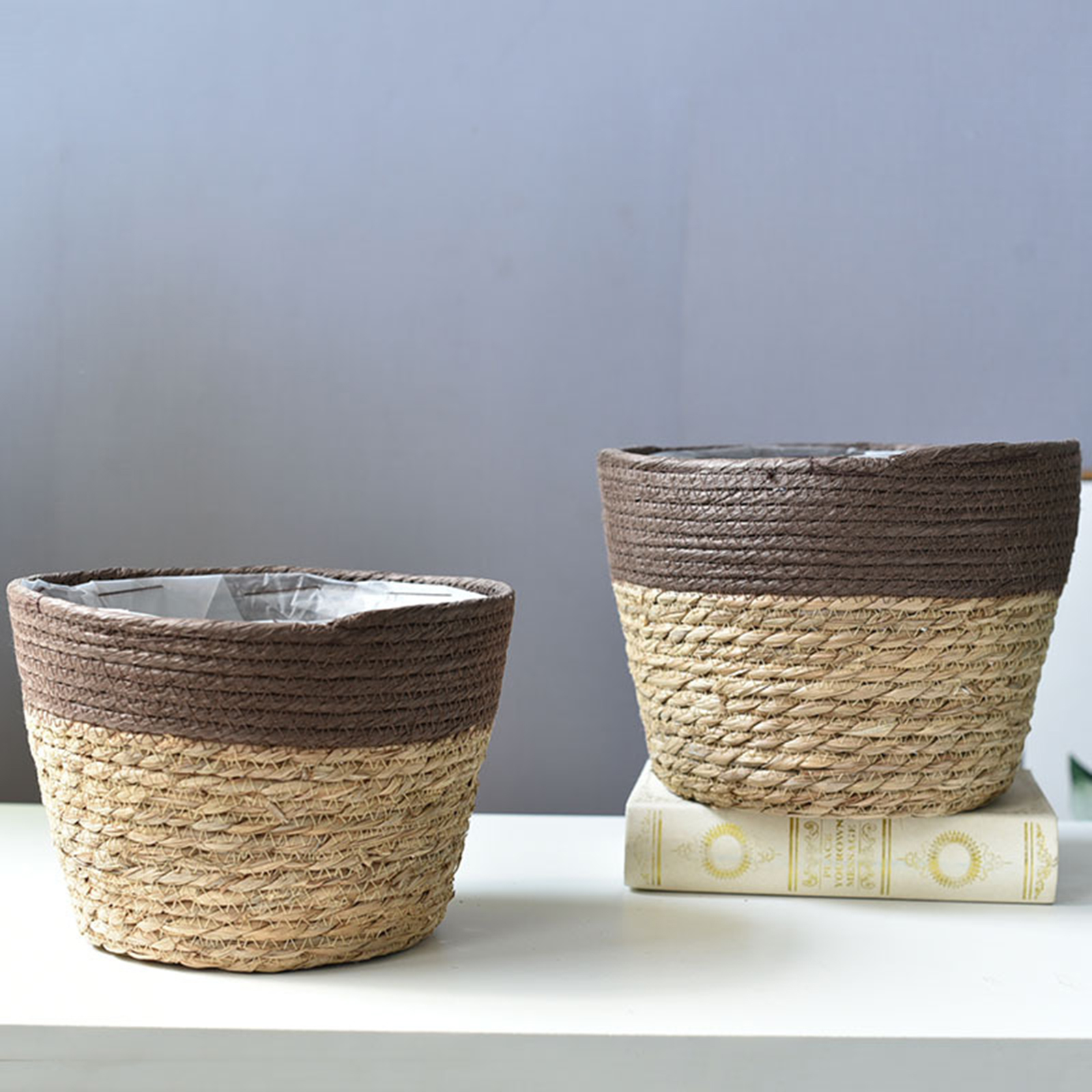 Корзина для хранения соломы ручной работы в скандинавском стиле из ротанга, напольный комнатный цветочный горшок, плантатор, украшение для дома, гостиной, цветочная корзинаUS $14,71