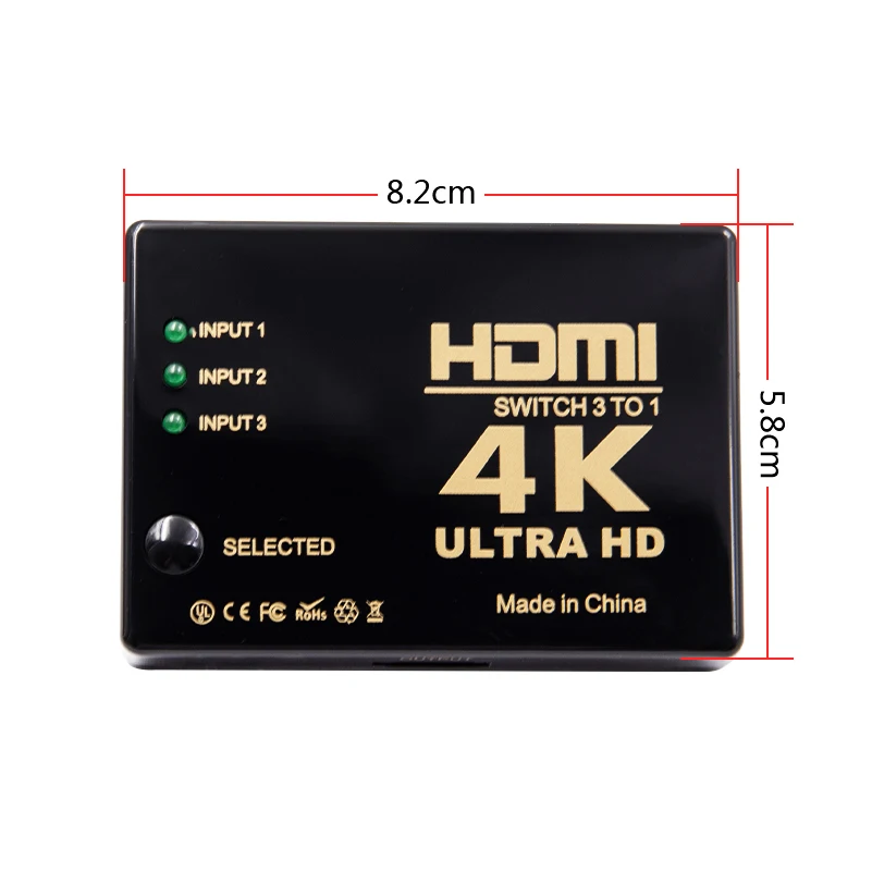 Описание -- мини-Коммутатор HDMI не только имеет функцию переключения клавиш, но и имеет интеллектуальную функцию. -- Мини-Коммутатор HDMI routs видео высокой четкости (в умножении до 4K x 2K) и цифровой аудио от любого из нескольких источников для отображения единиц. -- Все входы поддерживают соединения видео источников высокой четкости одновременно, -- Совместимость хорошо для HD-DVD. SKY-STB, PS3, Xbox360 и т. Д. Выход передает аудио/видео сигналы высокой четкости на функции дисплея высокой четкости-Этот мини-Коммутатор HDMI имеет множество функций, которые позволяют ему работать превосходно. -- Amang эти функции, которые вы найдете:-поддерживает 12-разрядный насыщенным цветом, полный 1080p со сверхвысоким разрешением ultra HD-Многофункциональный на Переключение блока: интеллигентая (ый) или механические-поддерживает с HDML1.4b -- высокая производительность до 3,4 г (сохранить высокое разрешение видео-красивая, sharp высокой четкости с разрешением до 1080p, 2k 1440p ГРАФИКА и разрешение компьютера до 4k x 2k легко достигаются. Посылка включает 1x3 порта 4K x 2K HDMI переключатель