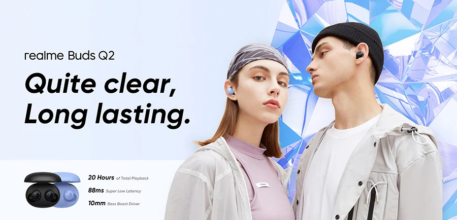 Realme Buds Q2 x1/кабель Micro-USB x1/зарядный чехол x1/Руководство пользователя x1/силиконовые наушники x6 (по одной паре каждая в L, M и S)