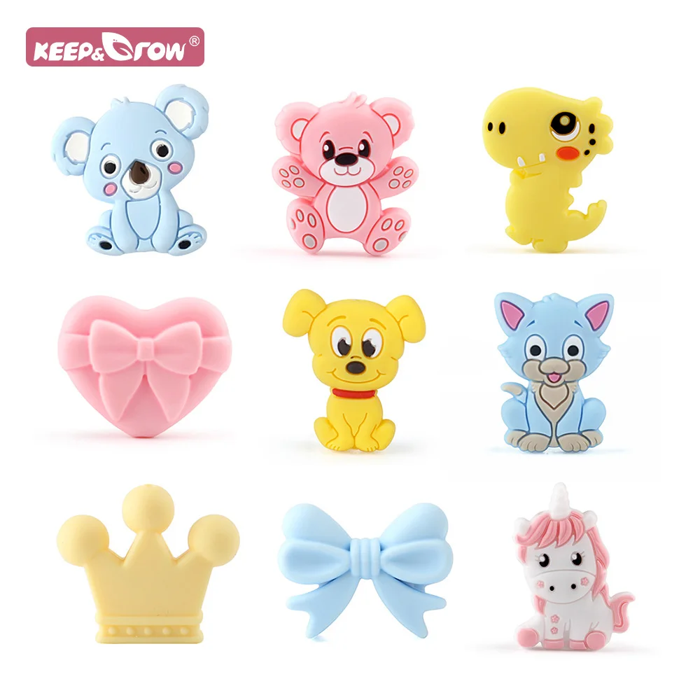 5 шт. силиконовые животные мультфильм детские бусы Прорезыватель коала кошка собака медведь для соски бусы-клипсы для новорожденных продукты для прорезывания зубов