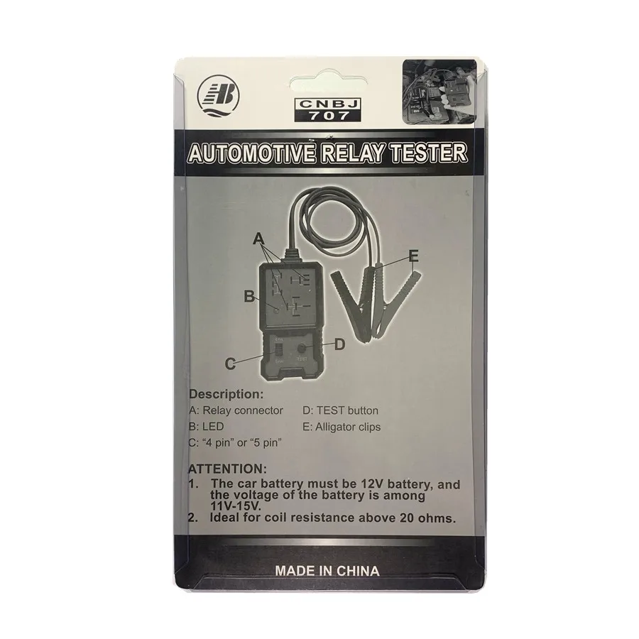 Through the continuous automobile battery (11V-15V) to the relay coil, the detector can properly check the relay contact function.
