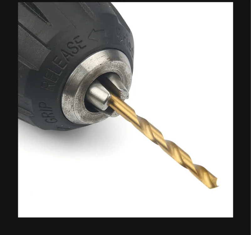 Эта модель представляет собой titanium покрытием Поворотная дрель комплект, 1-2,5 мм Размер выполнена из быстрорежущей стали, и 3 мм Размер изготовлено из высокоуглеродистой стали.