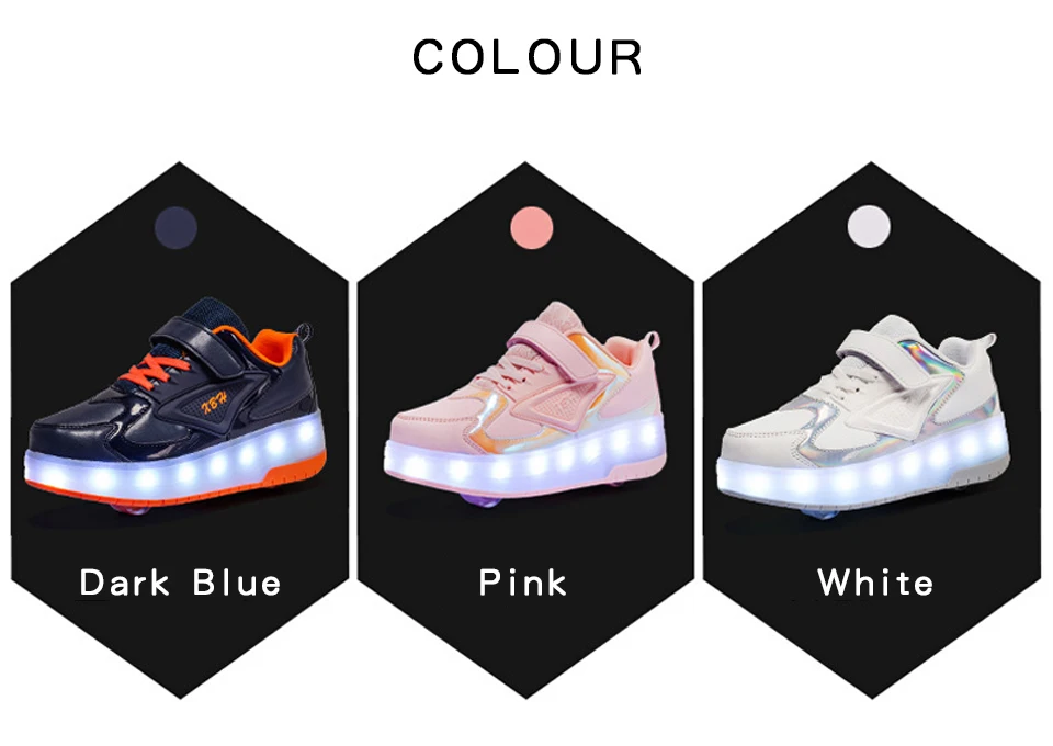 Модель: S5002 Категория: модные хилисы Пол: нейтральный Стиль: два колеса Цвет: темно-синий, розовый, белый Китайский размер: 28-40 Верх: кожа Внутри: сетка Материал стельки: ЭВА и ткань Подошва: TPR Преобразование единиц измерения: 1 см ≈ 0,39 дюйма Спецификация: см. Страницу с подробностями Информация о размере предназначена только для справки, пожалуйста, заказывайте в соответствии с размером, который вы обычно носите.