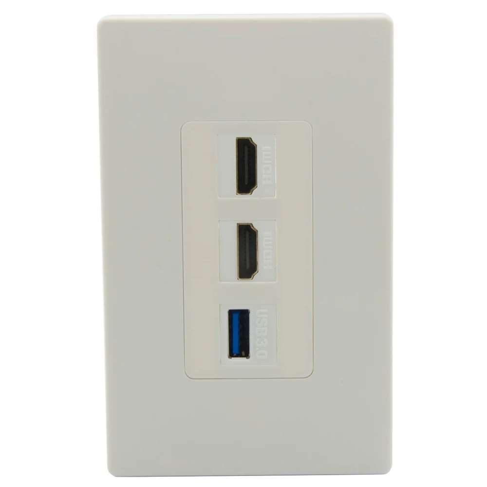 1 банды Нет Винт Стиль стены plat с 120X70 мм (Д X Ш X В). Интегрируйте 2 порта HDMI Female В гнездовой разъем. Интегрируйте 1 порт USB 3,0 гнездо к гнезду разъема. Очень тонкая лицевая пластина толщиной всего 7 мм. Стандартные замочные отверстия, чтобы поместиться в любой ключ Джек и поддержка настройки.