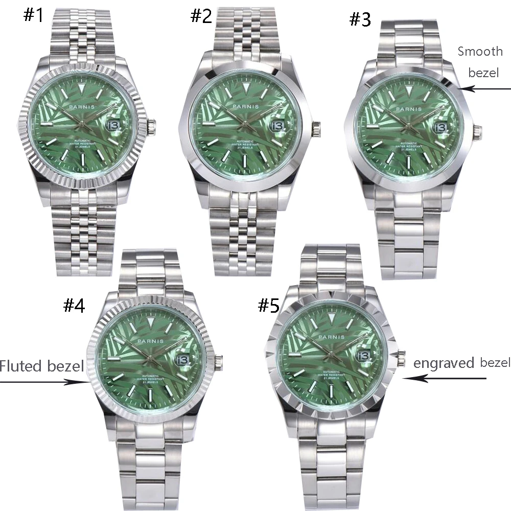 >Movement: mingzhu 2813/miyota 8215 Automatic(Self-Winding) movement >Dial: Date at 3 o'clock position >Case Material: 316Lstainless steel case. >Case diameter: 39.5mm without crown >Case thickness :12.65mm >Strap Width: 20mm Stainless Steel Bracelet with Folding Clasp >Bezel :Stainless steel bezel insrt >Glass:Sapphire Glass >Waterproof: 3ATM >Dear friend,they have different bezle and bracelet ,you can select one you like!