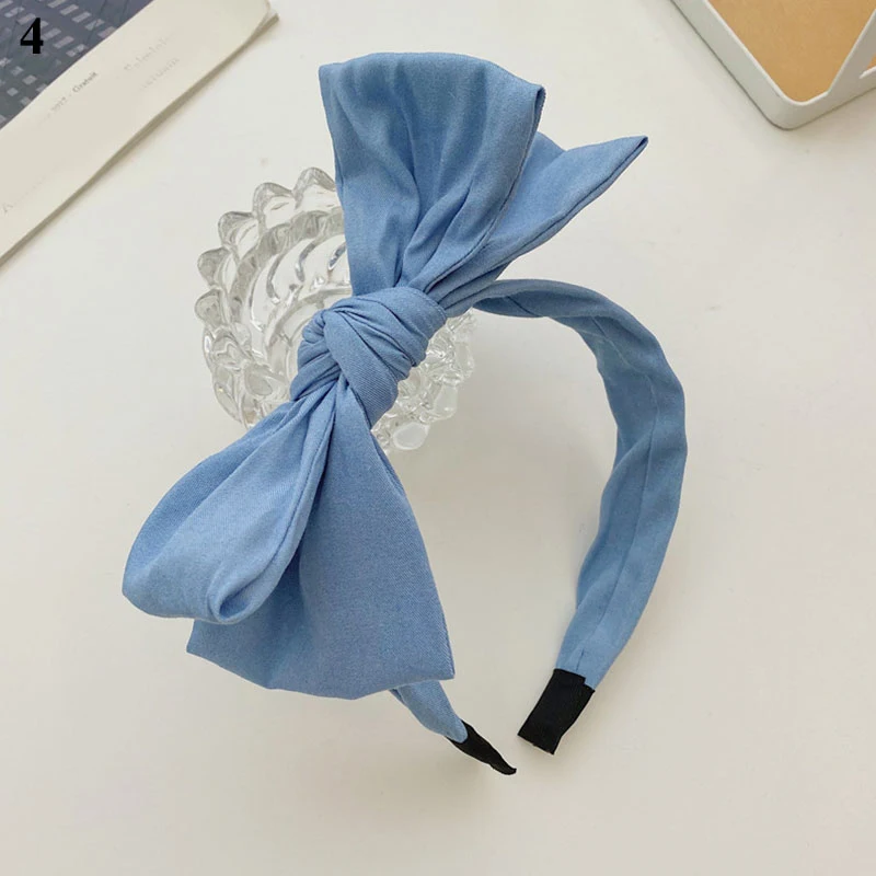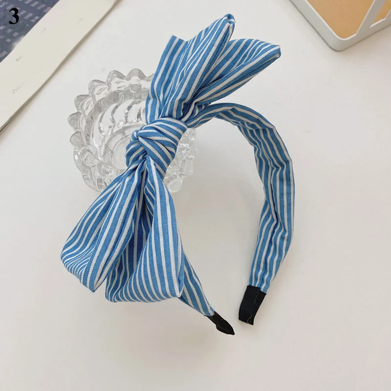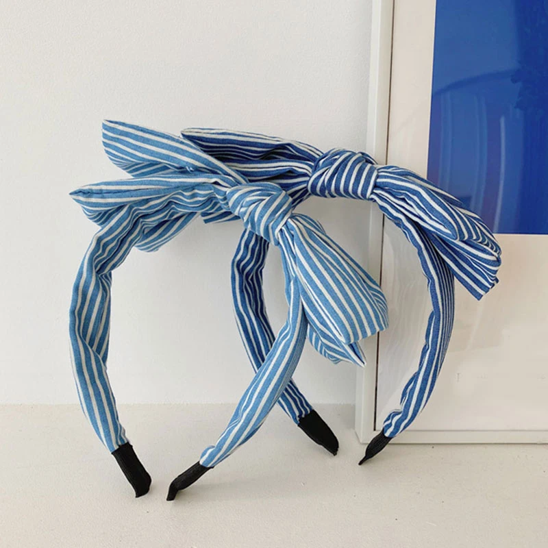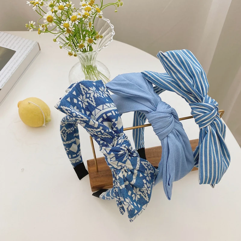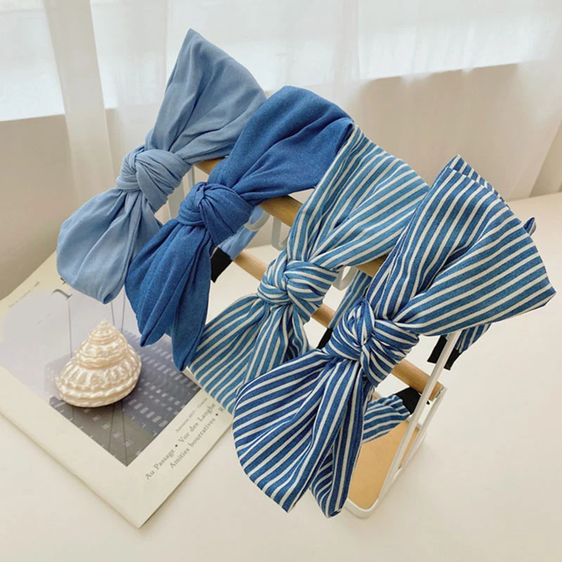 Полосатый Синий обруч с широкими головками, джинсовый обруч с большим бантом, двухслойный обруч для волос с бантом, Простые Модные аксессуары для волос