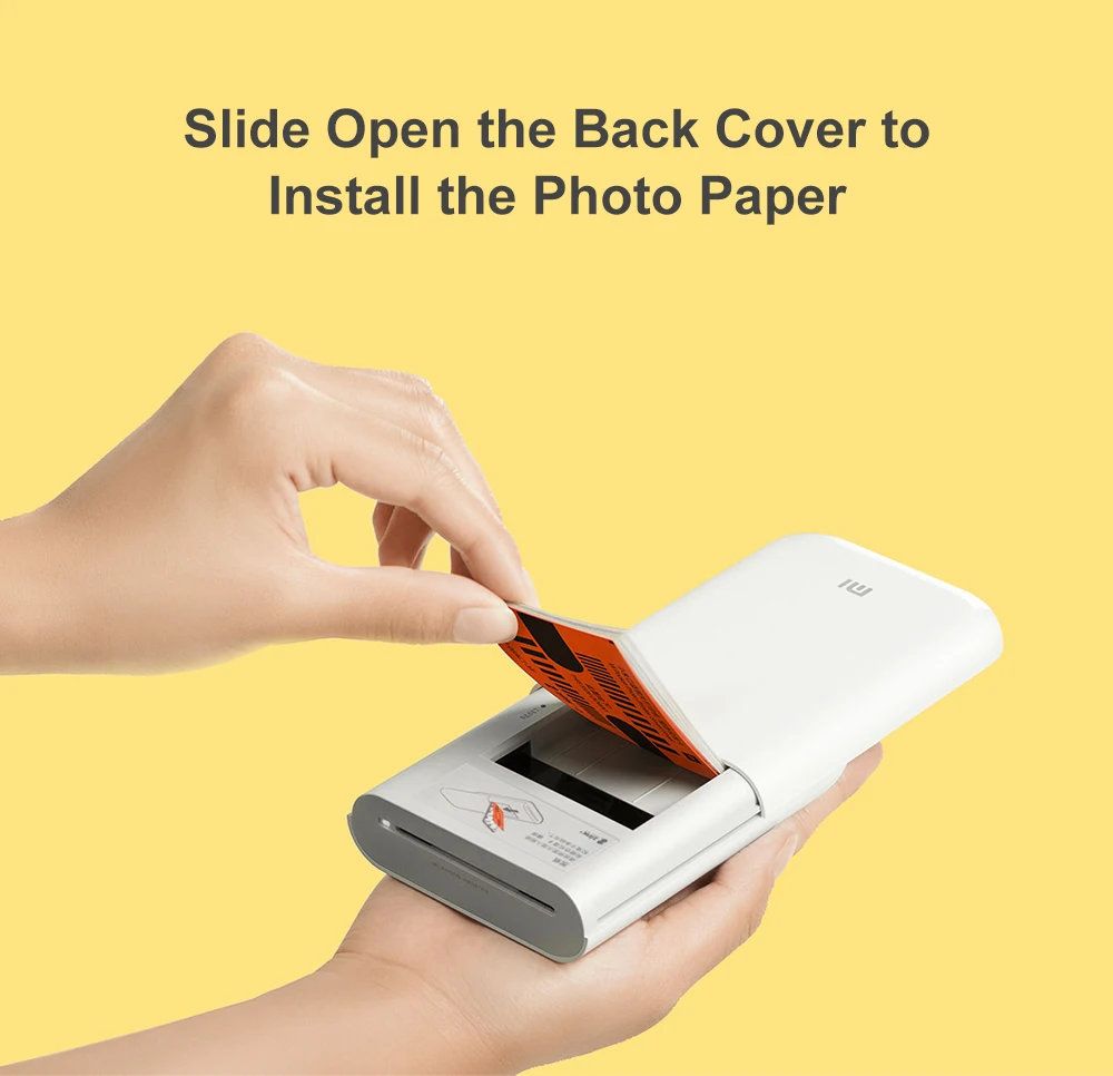 Slide open the back cover to install the photo paper