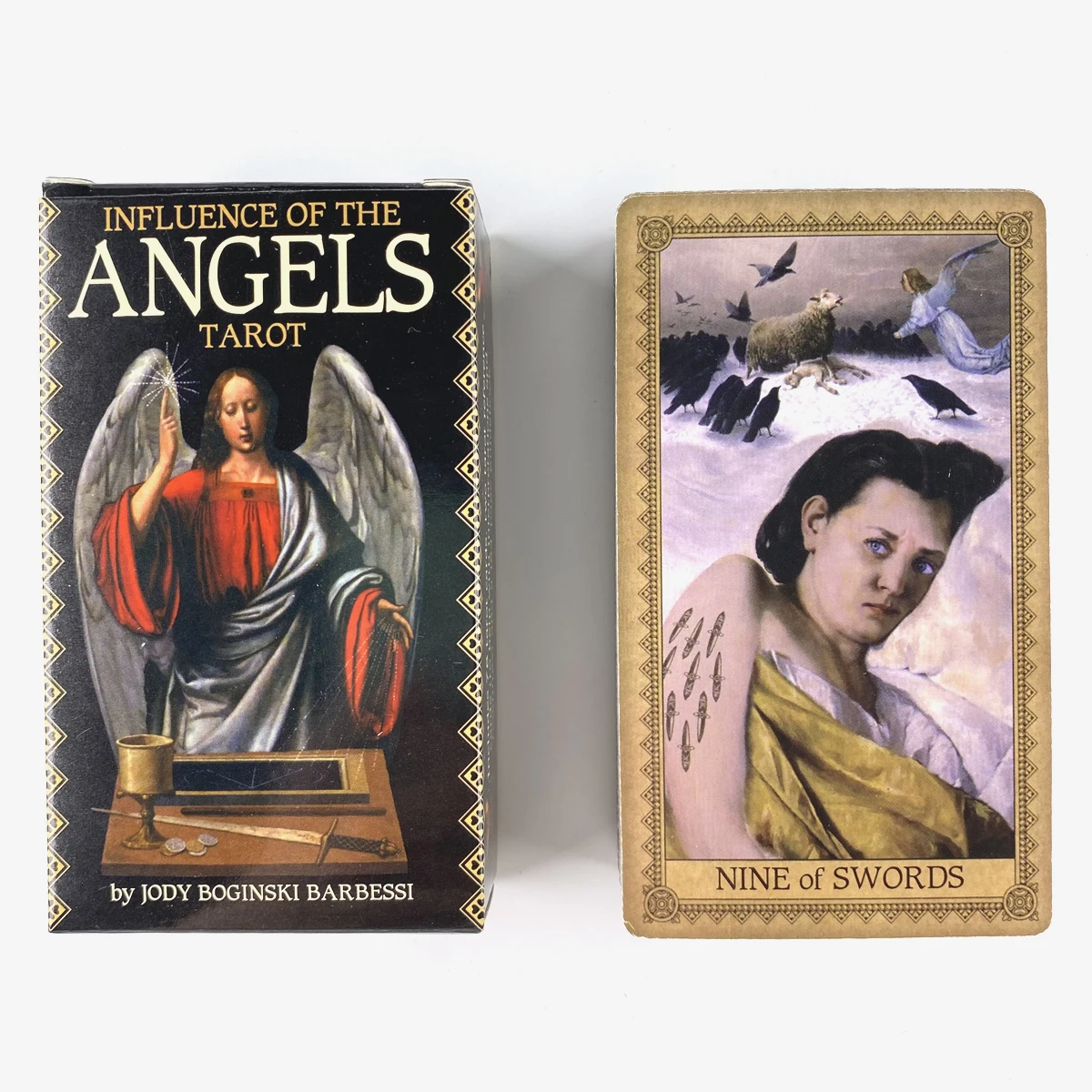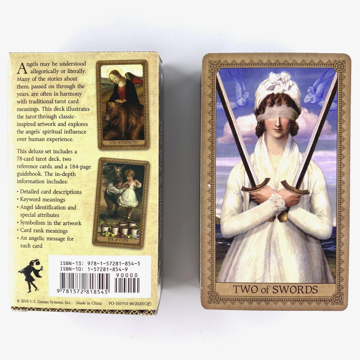 Духовное влияние ангелов на человеческий опыт красиво изображается в этой позолоченной палубе через классическое художественное оформление.